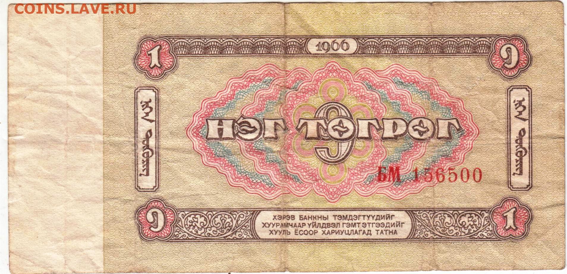 МОНГОЛИЯ 1 тугрик 1966 г. до 22.10.25 г. в 23.00