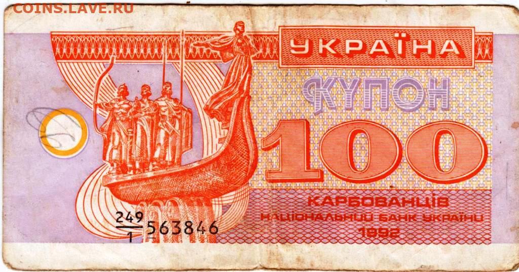 УКРАИНА купон 100 карбованцев 1992 г. до 24.10.25 г. в 23.00