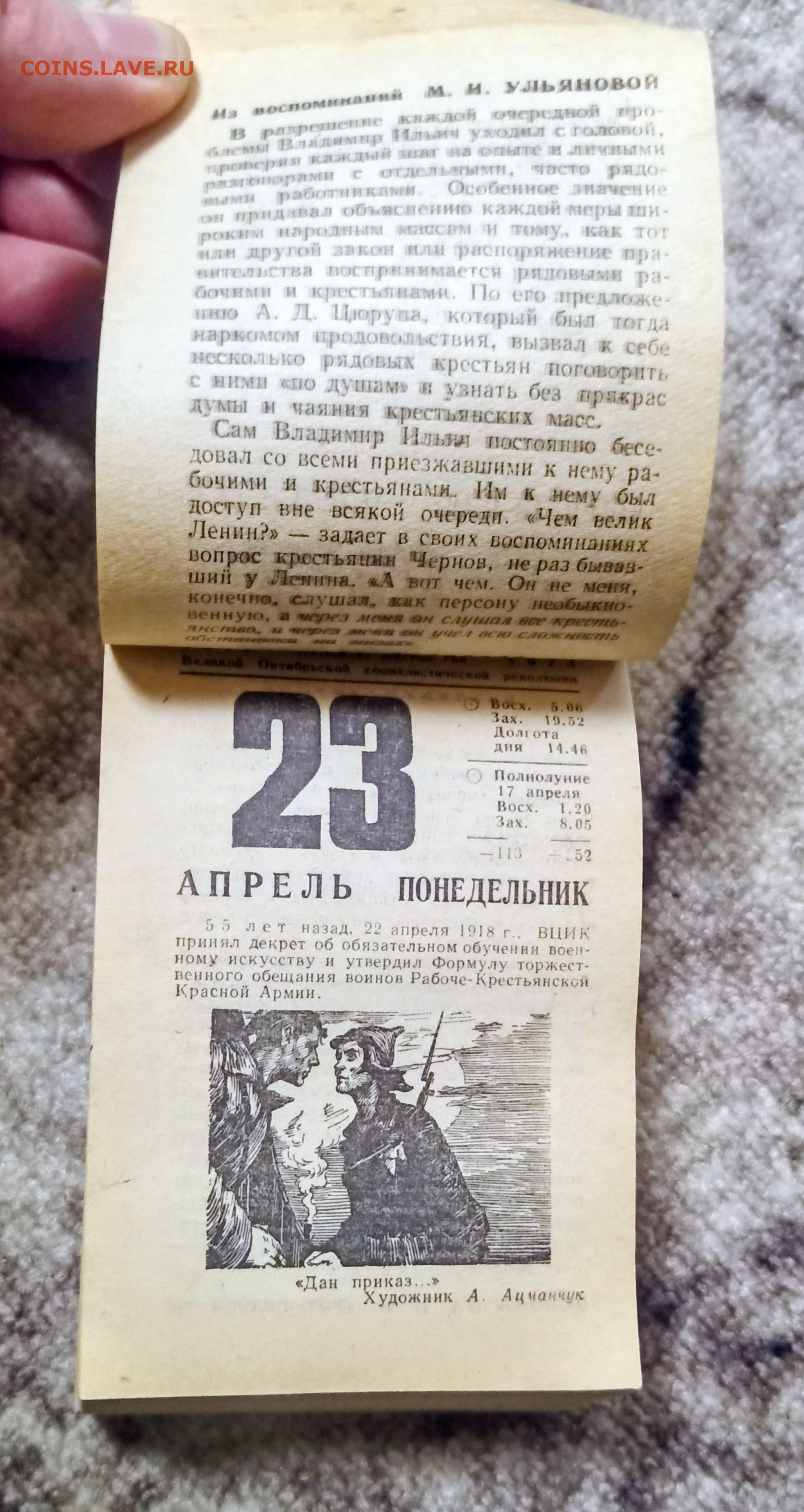 Отрывной Календарь 1973г.11.01.2026г.22-00МСК.