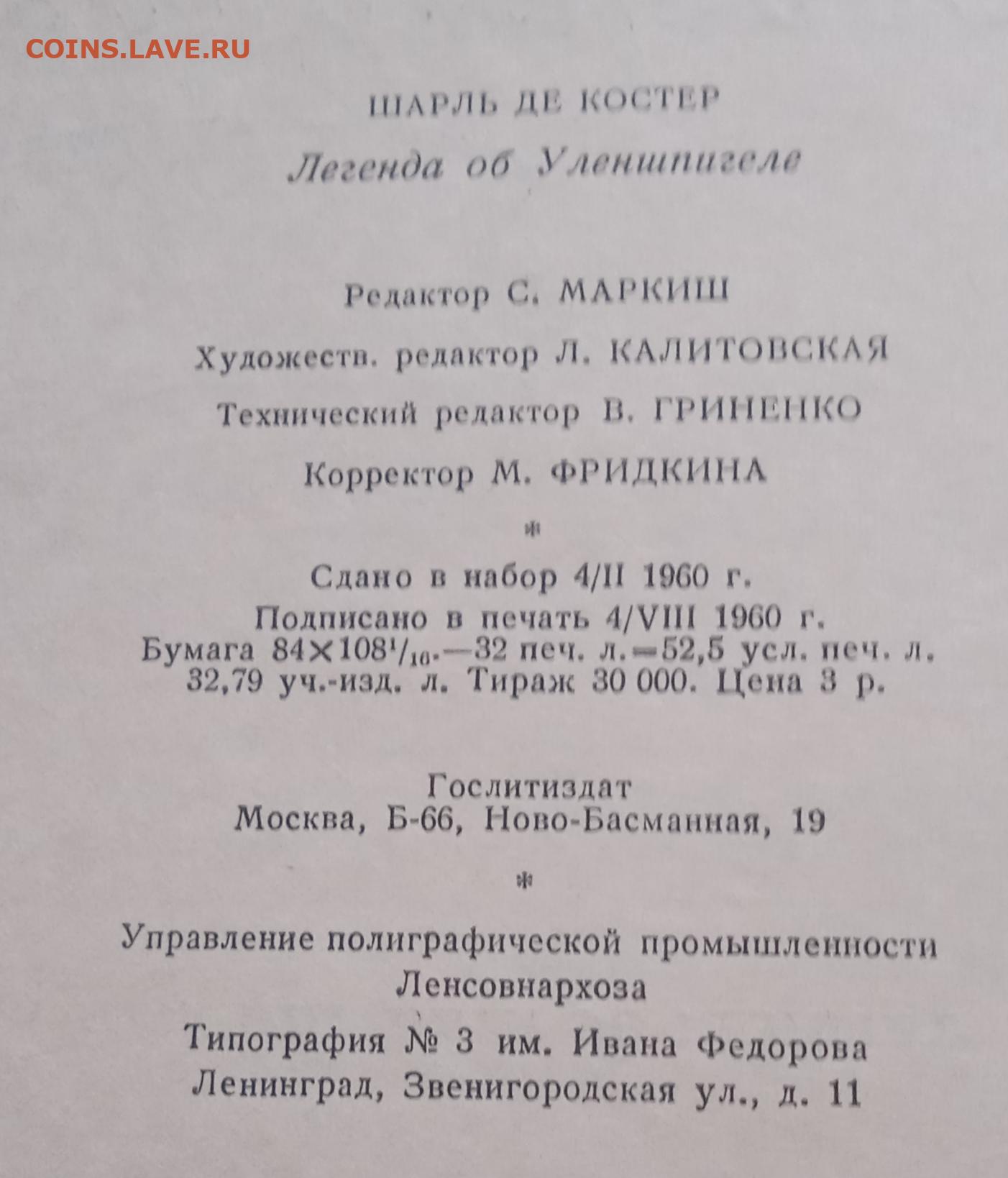 Книга Легенда об Уленшпигеле, 1961