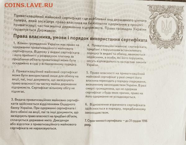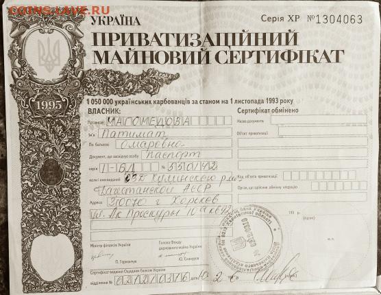Украина: Приватизационный сертификат Фикс