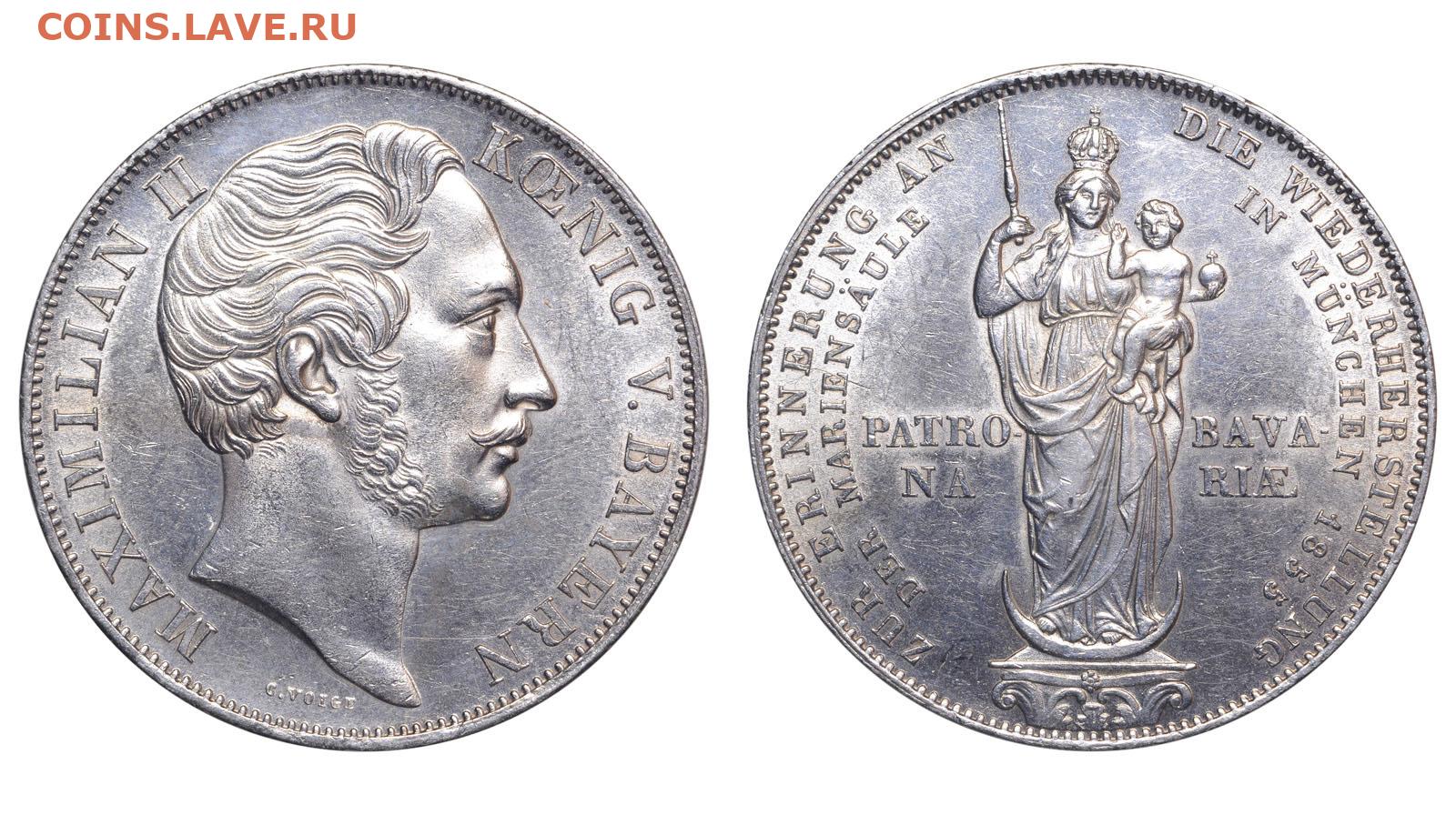 Бавария. 2 гульдена 1855 г. Мадонна. До 08.11.25.