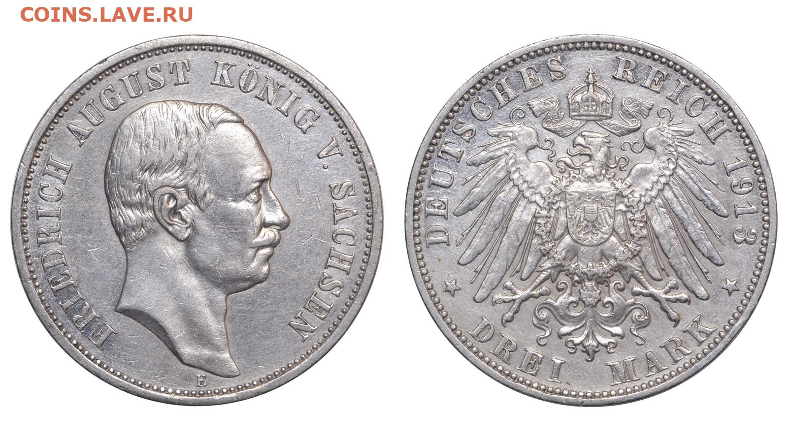 Саксония. 3 марки 1913 г. Фридрих. До 08.11.25.