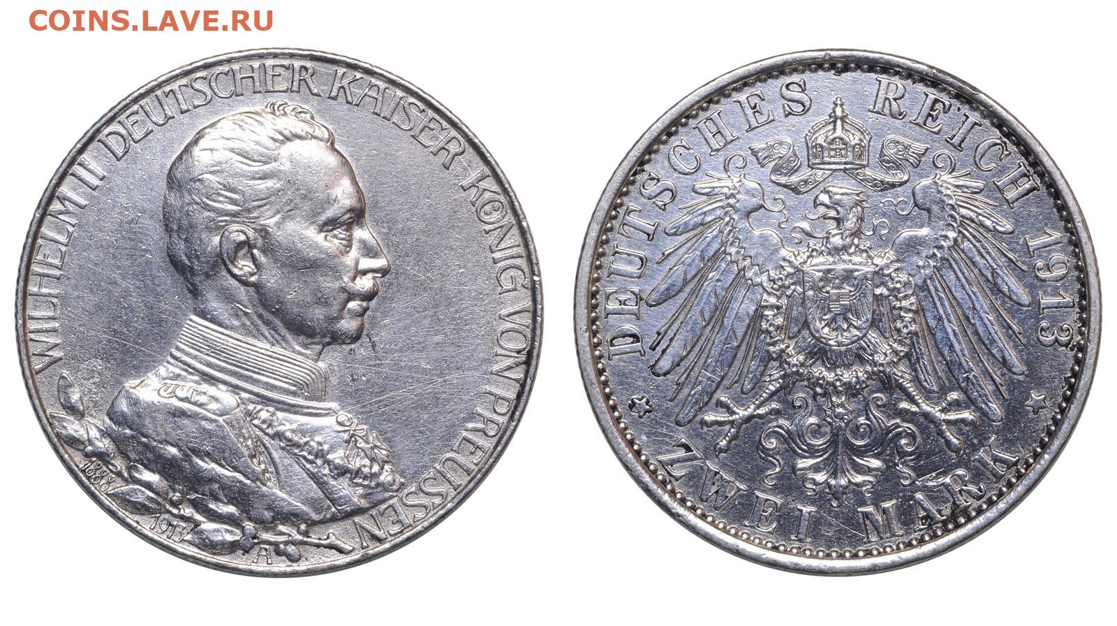 Пруссия. 2 марки 1913 г. Вильгельм II. До 08.11.25.