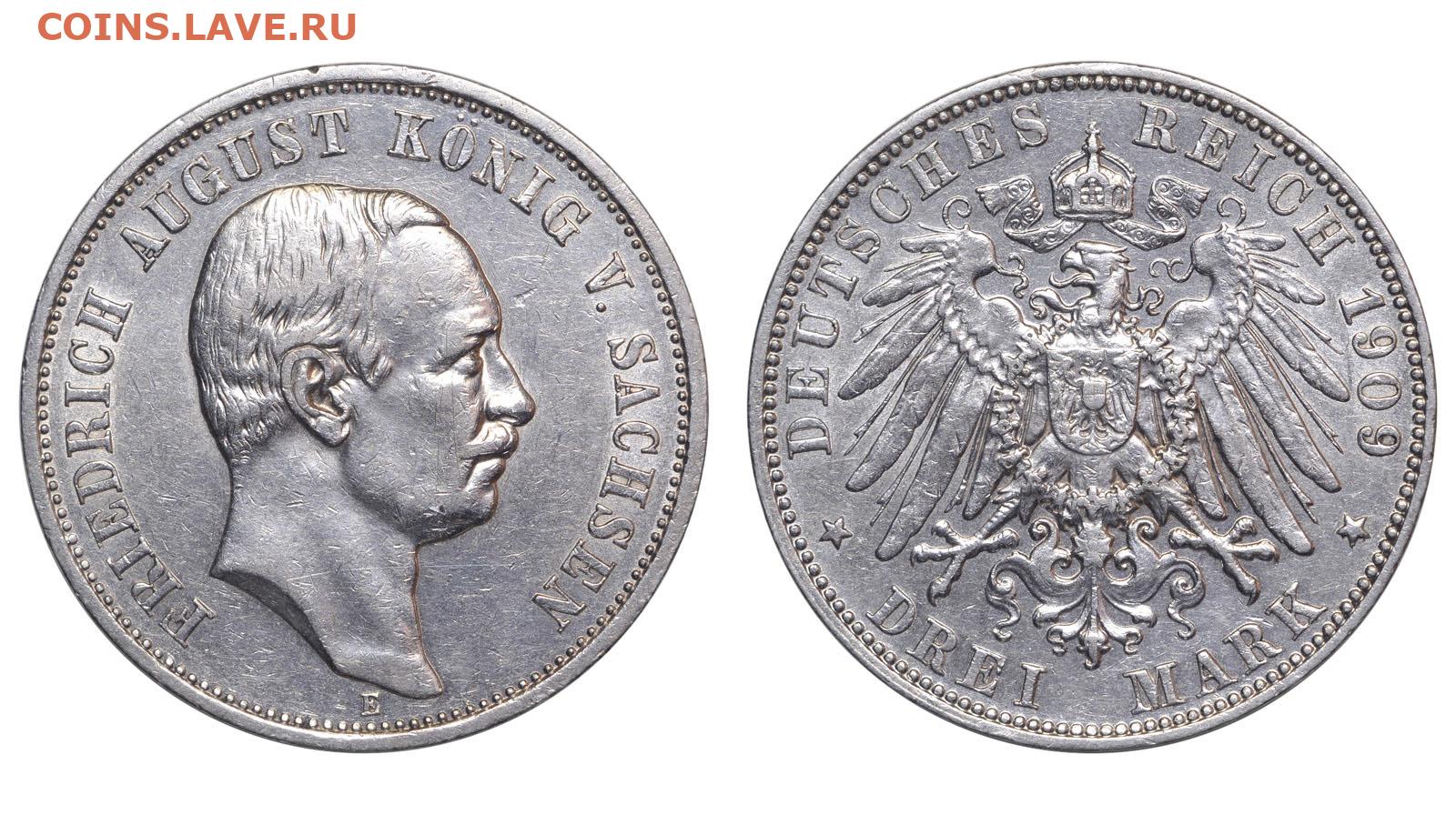Саксония. 3 марки 1909 г. Фридрих. До 30.11.25.