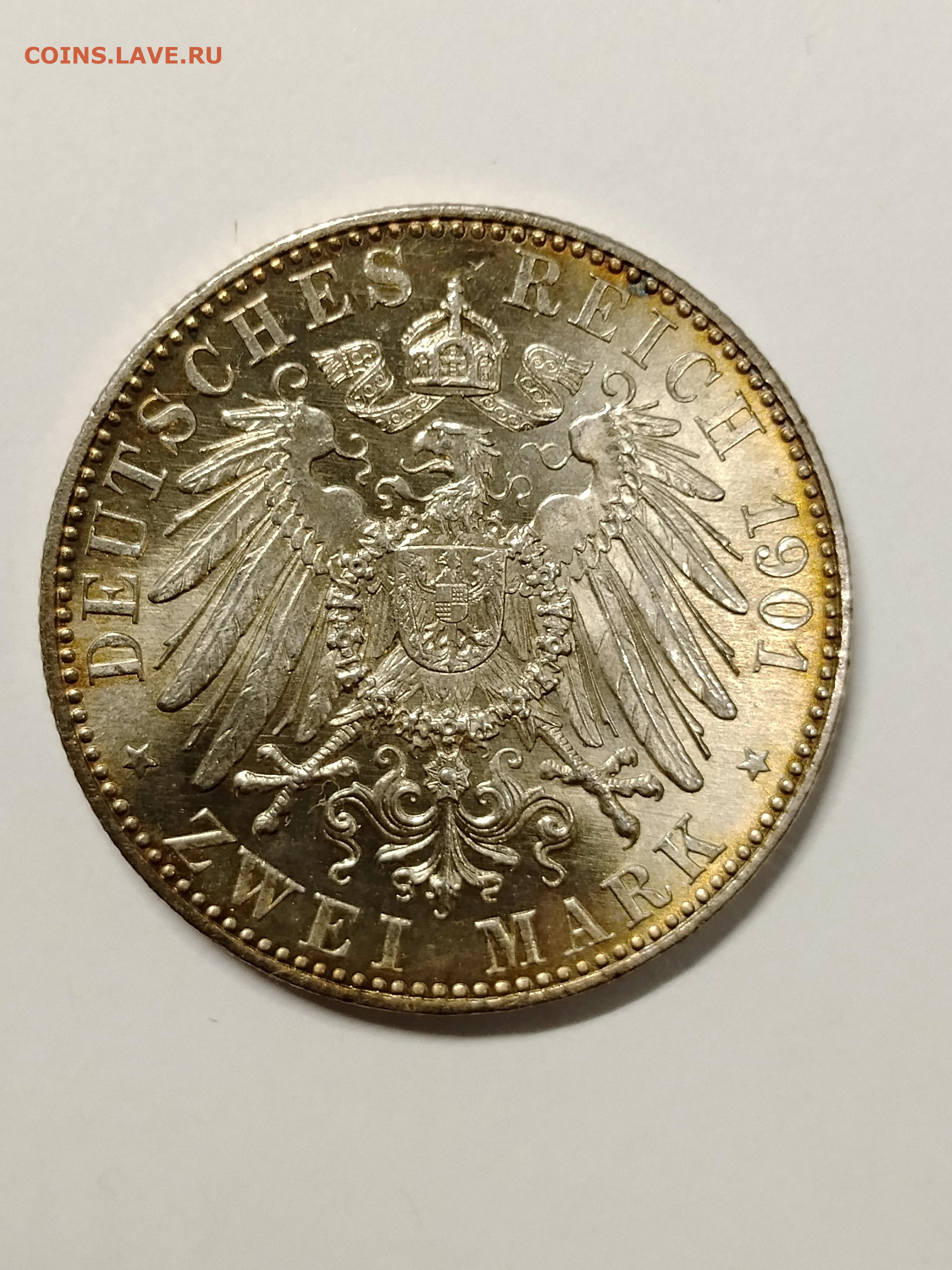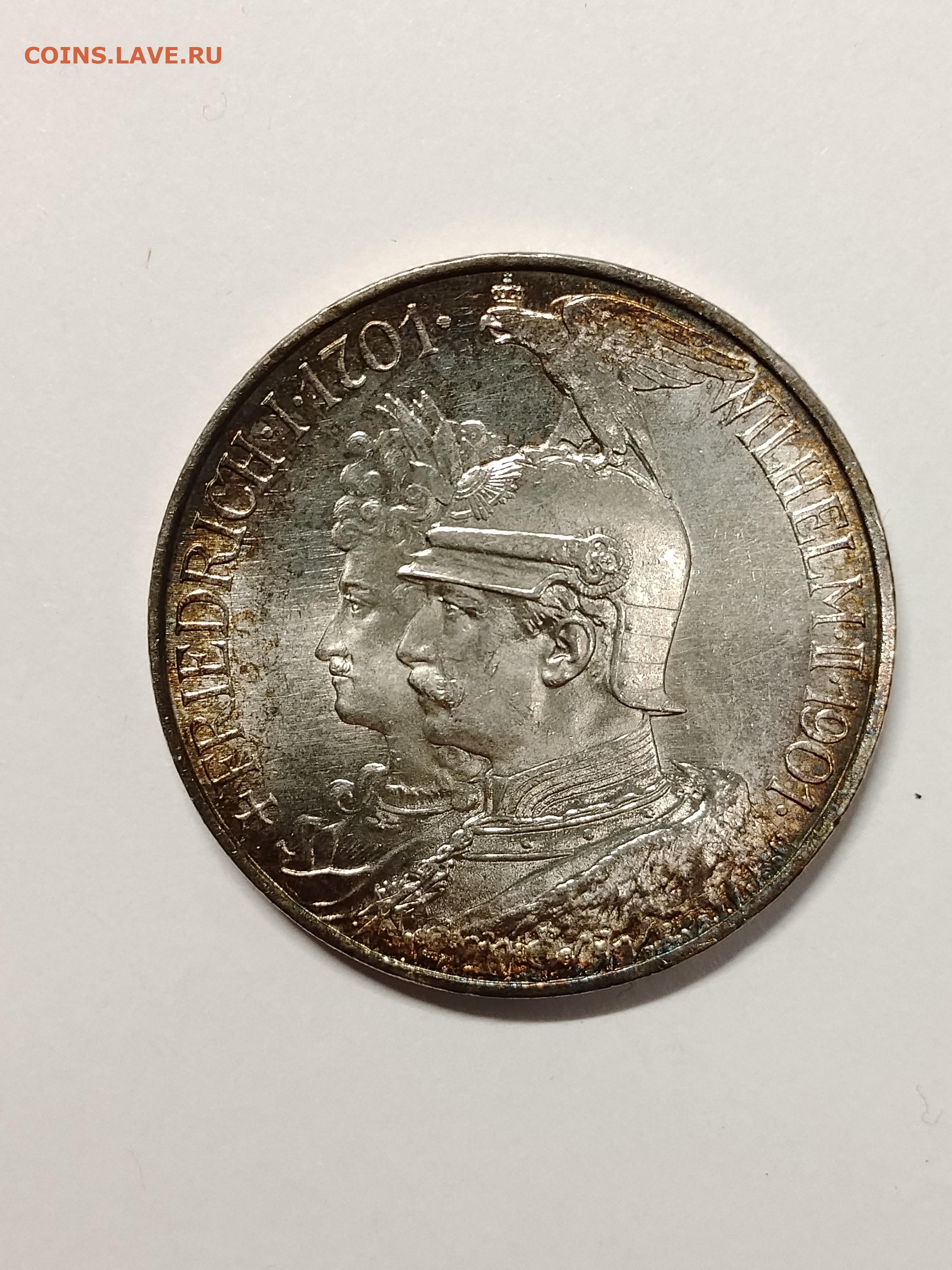 Германия, Пруссия 2 марки 1901 200 лет династии до 20.01