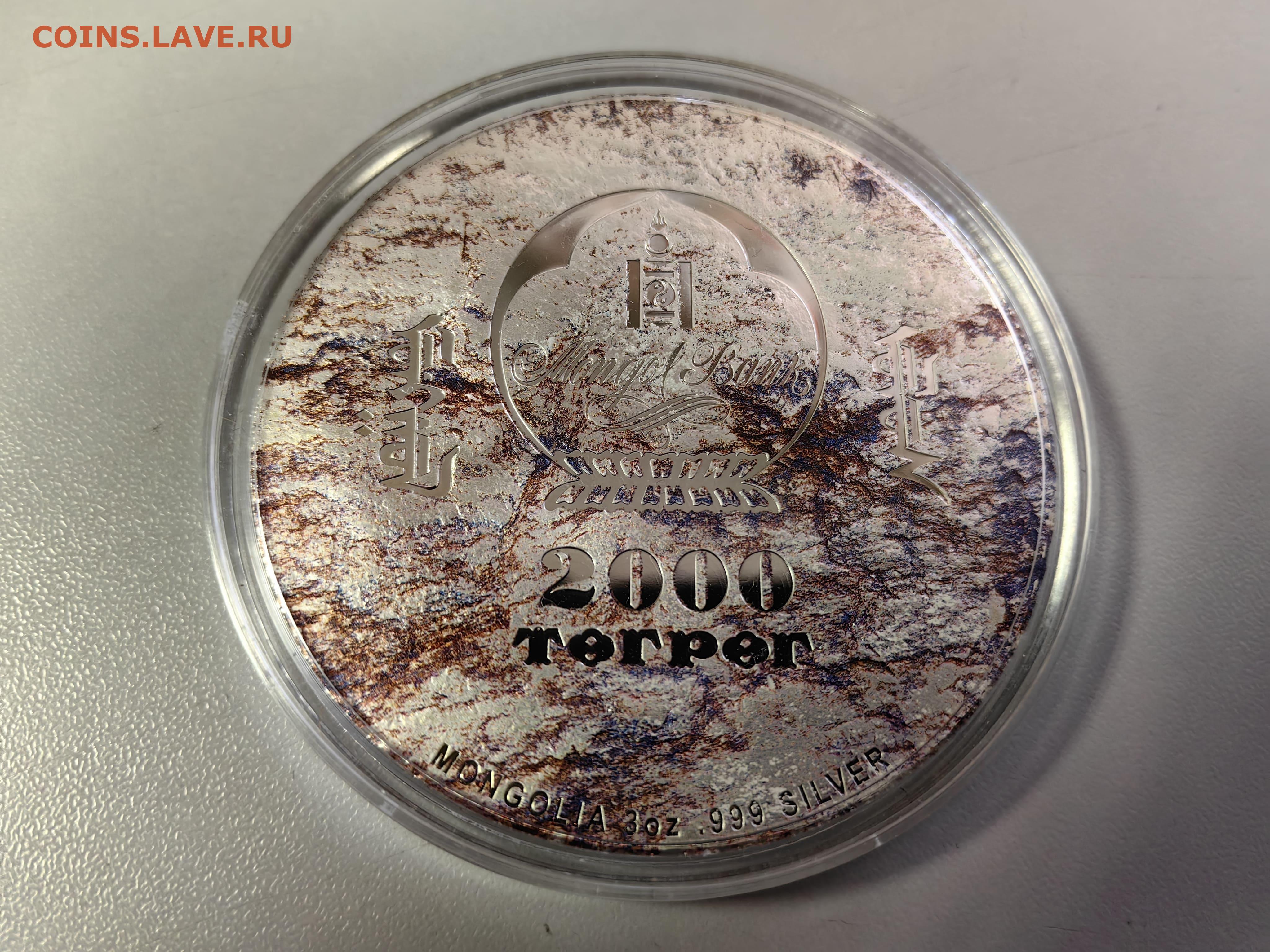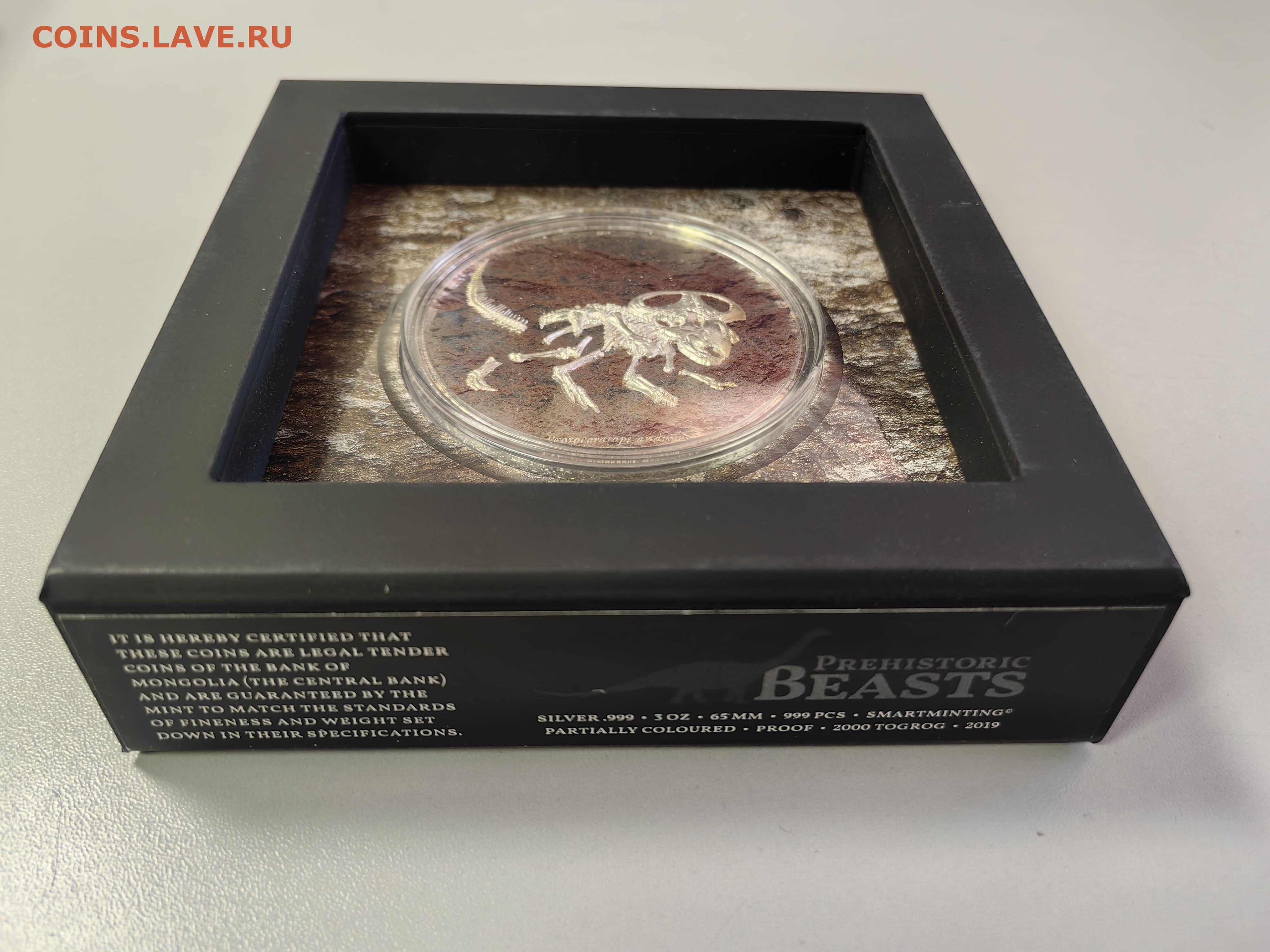 Монголия 2000тугр 2019 Протоцератопс, Ag999, 3унц, до 09.02