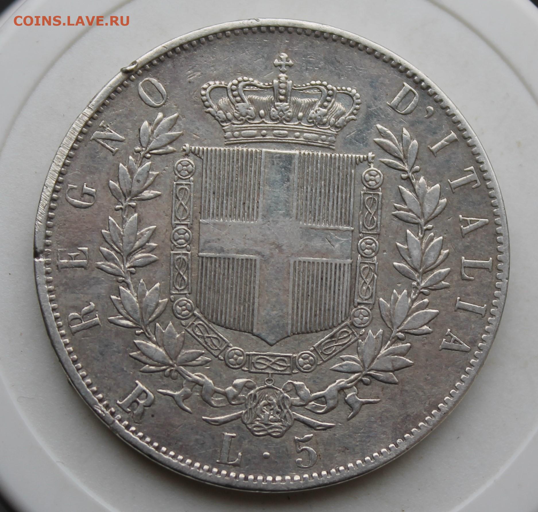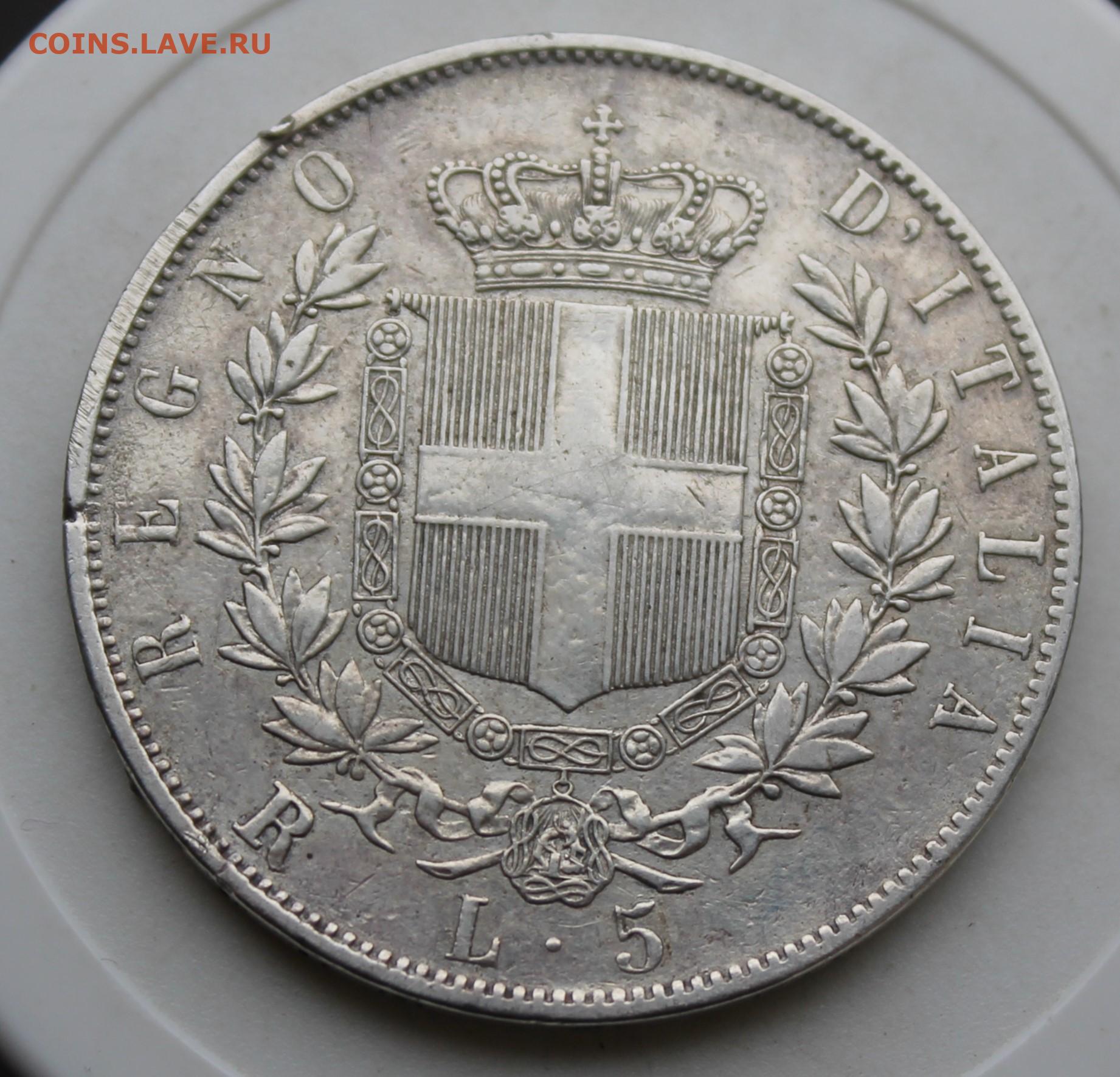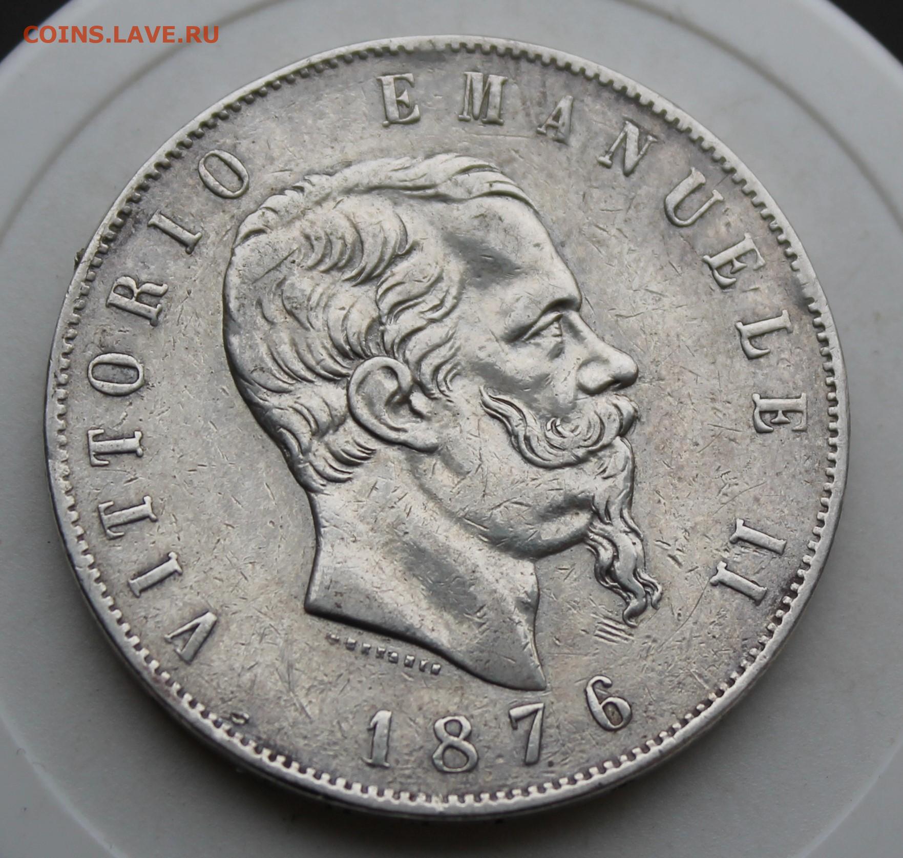 Италия 5 лир 1876 год