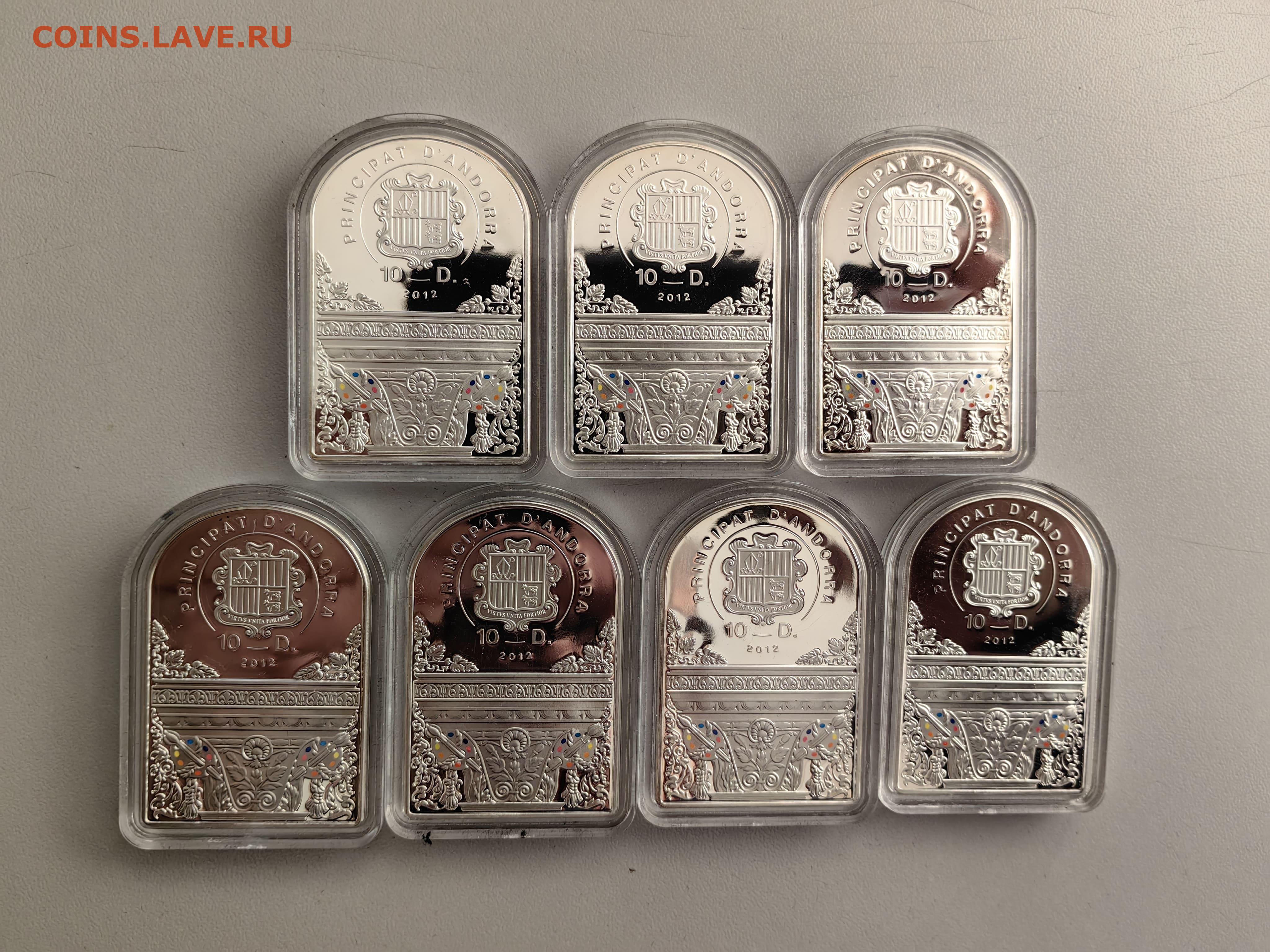 10дин 2012 Андорра, Семь добродетелей (7шт) Ag999, до 10.03