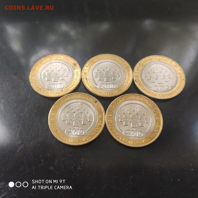 Лот 5 шт. 10 рублей 2010 года Перепись UNC - 24.10. до 22.00