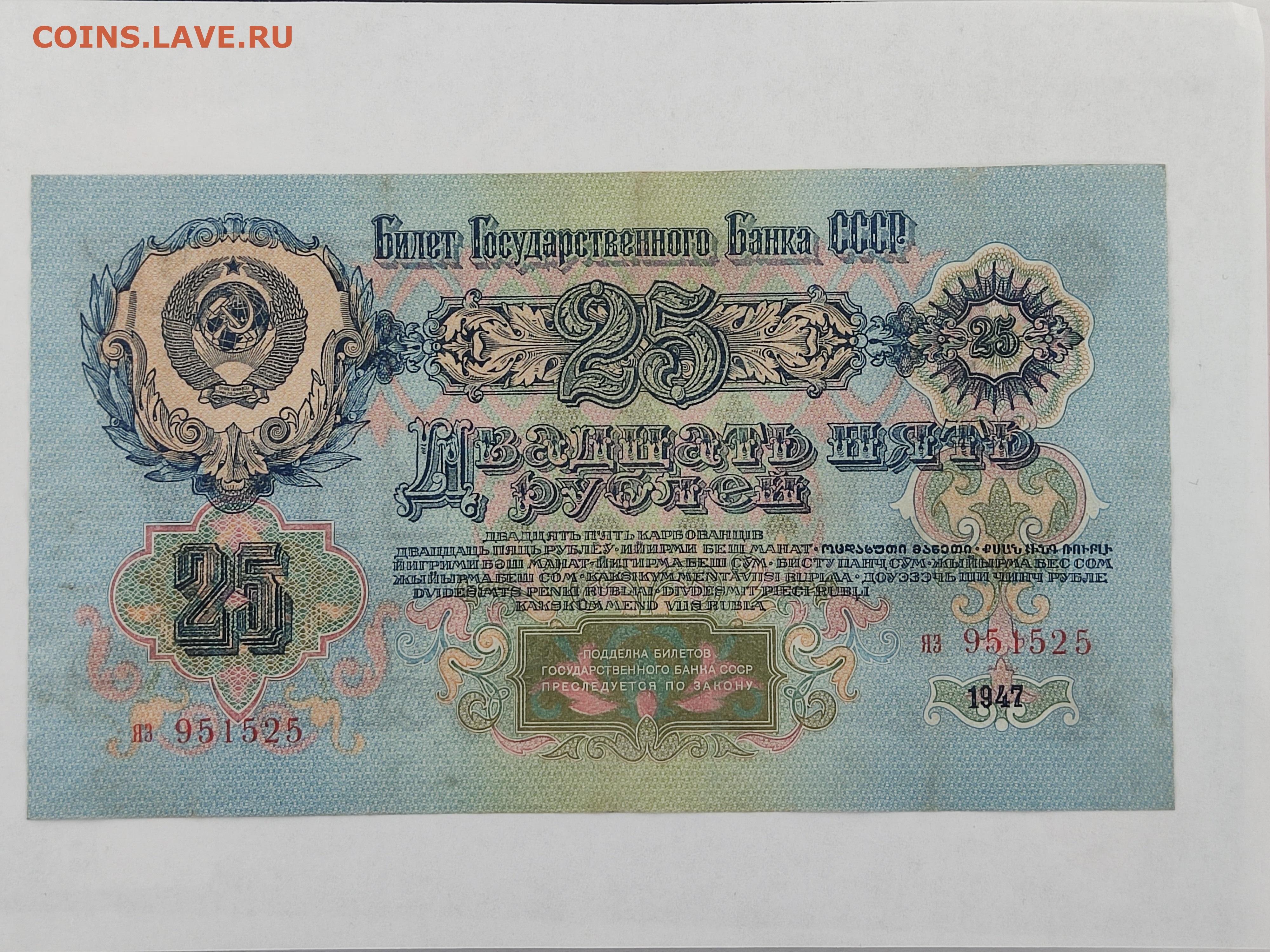 25 руб 1947г до 22-00 09.11.2025г