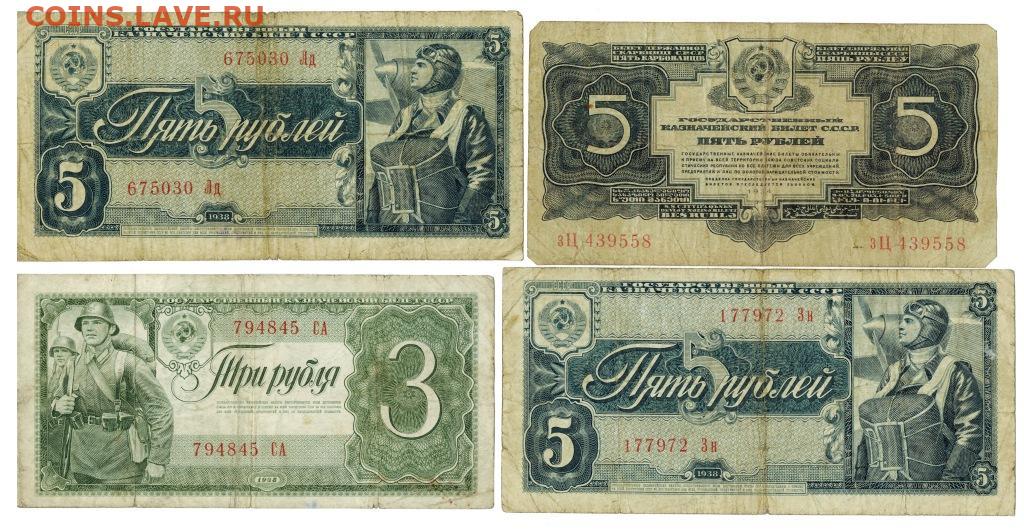 5 руб.1934, 3 руб 1938, 5 руб 1938 -2 шт. до 18.11.25 года