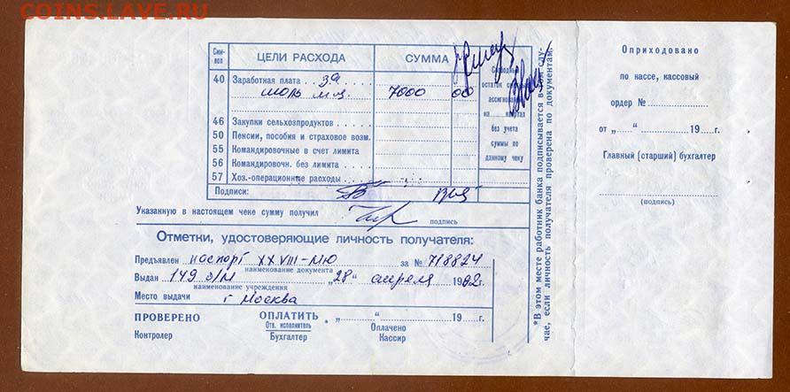 Чек Банка СССР с корешком 1992 до 8.12.