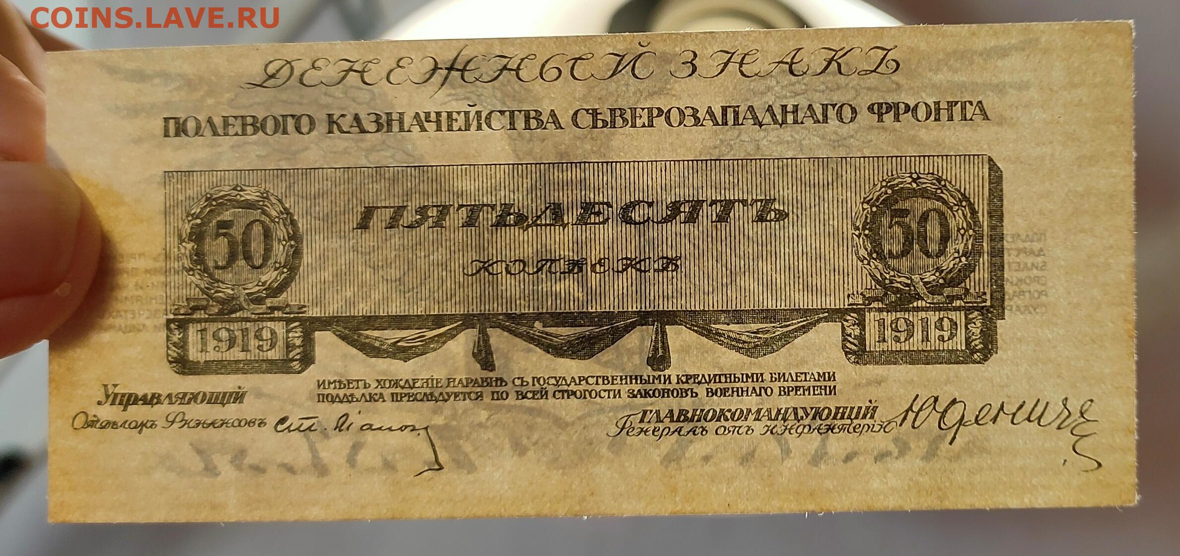 50 копеек 1919 Юденич UNC до 14,01,2026 22 00 по МСК