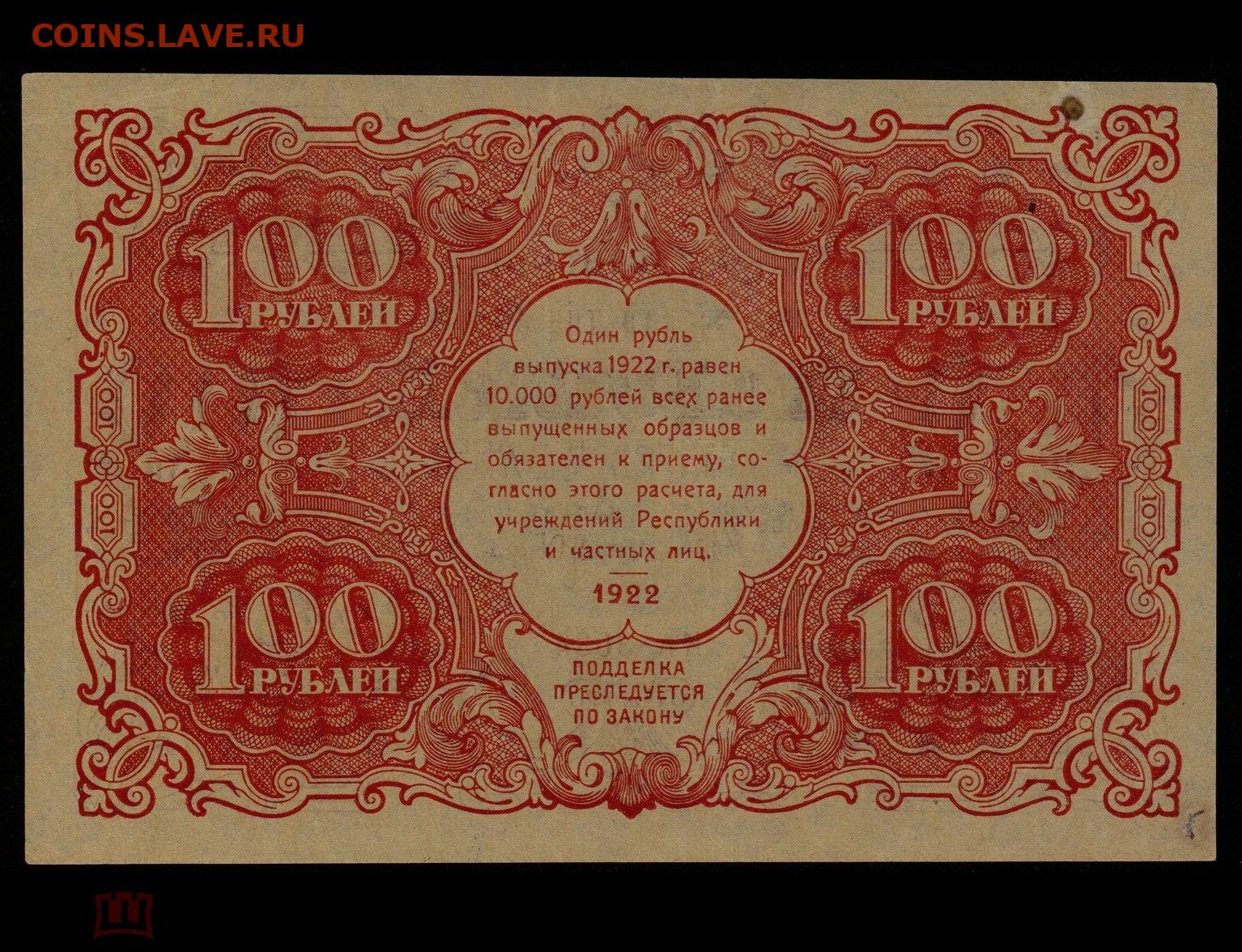 100 рублей 1922 до 22-00 по МСК 19.01.2026