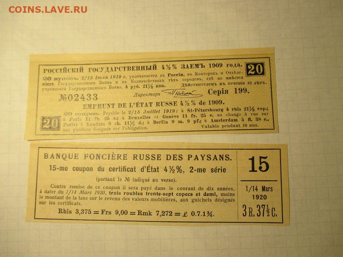 Купоны от Облигаций .2 штуки . 1909 и 1920 года.