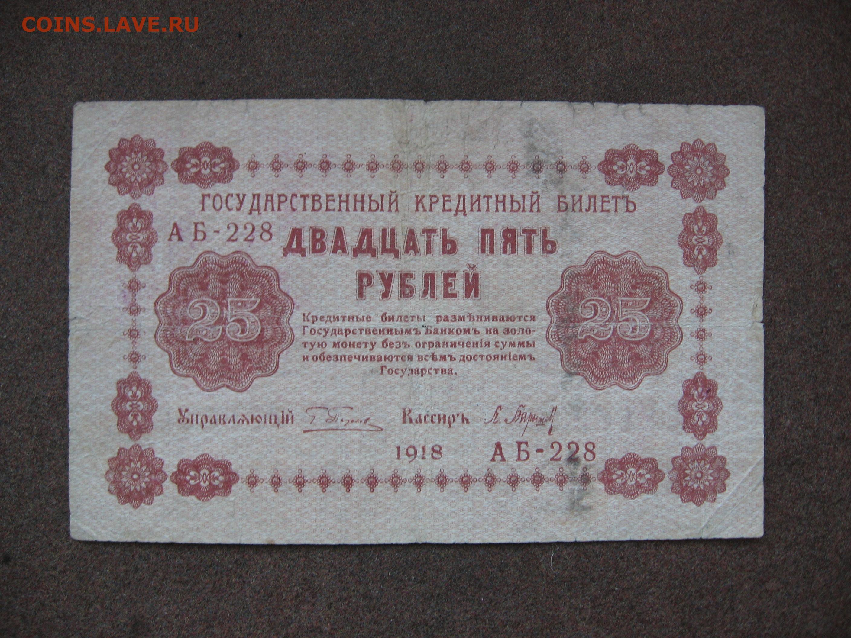 25 рублей 1918 г. до 22.00 26.01.26