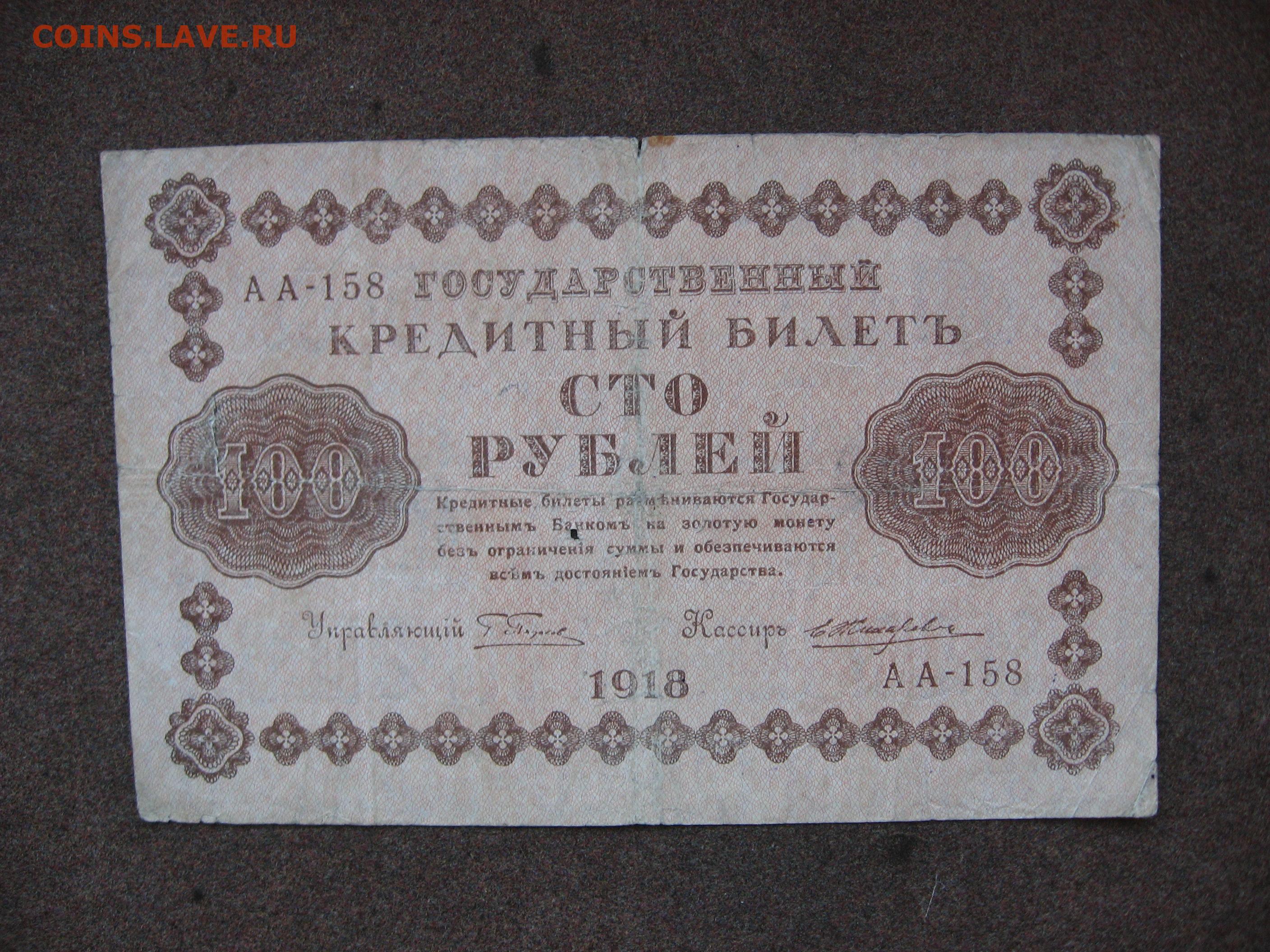 100 рублей 1918 г. до 22.00 26.01.26