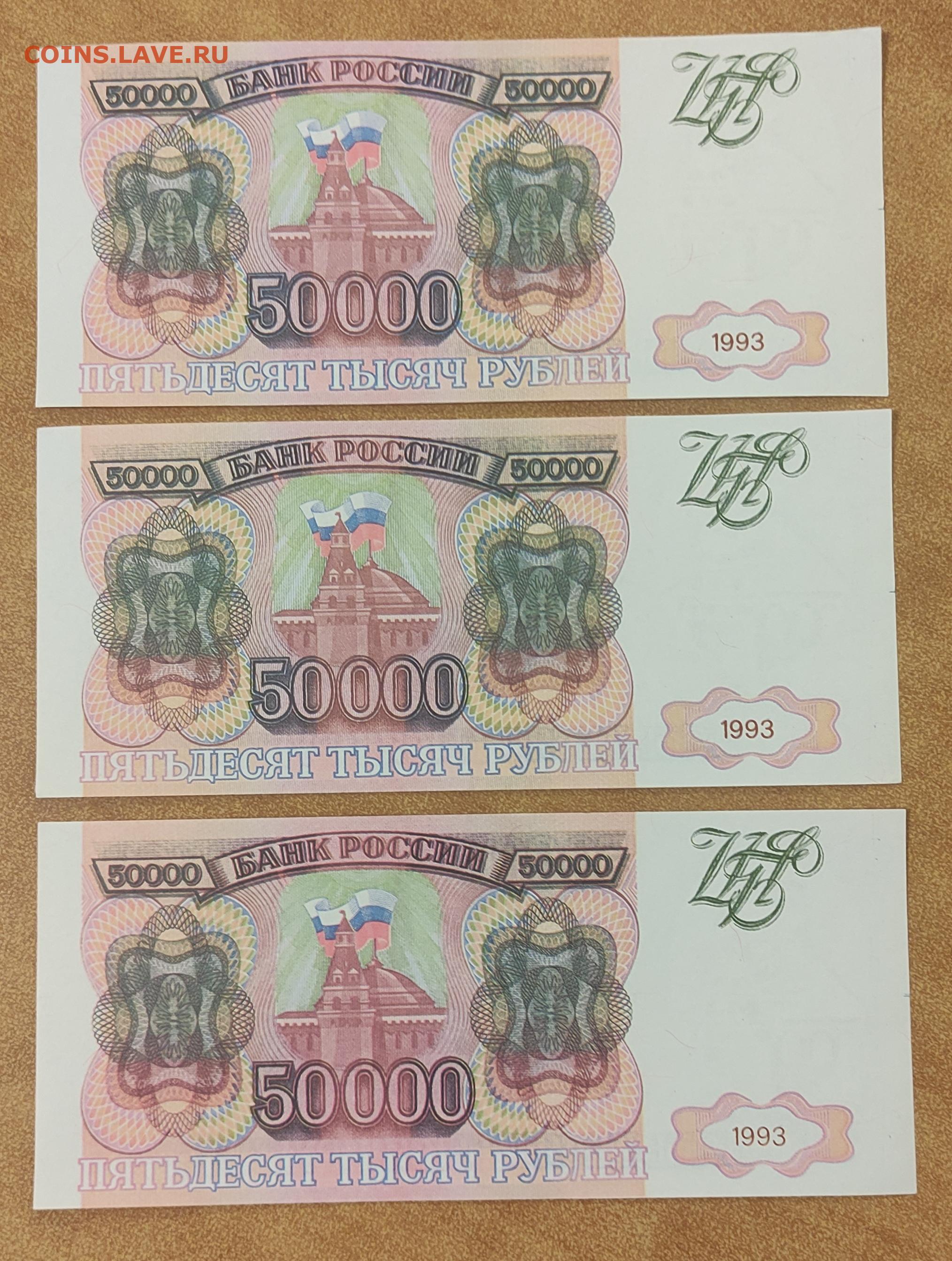 50 т р 1993 г Фальшивки 3 шт одинаковые номера 22-00 5.03