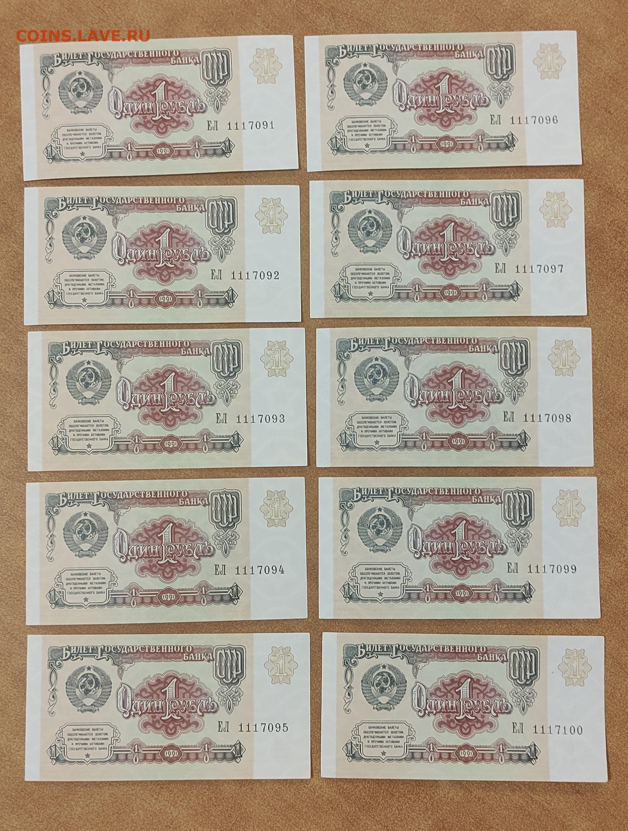 1 р 1991 г 10 штук номера подряд до 05.03 в 22-00