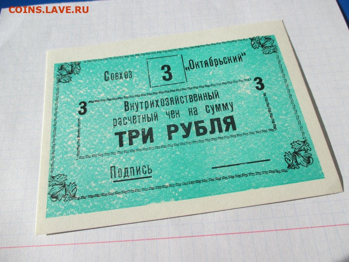 Расчетный чек 3 рубля Совхоз Октябрьский