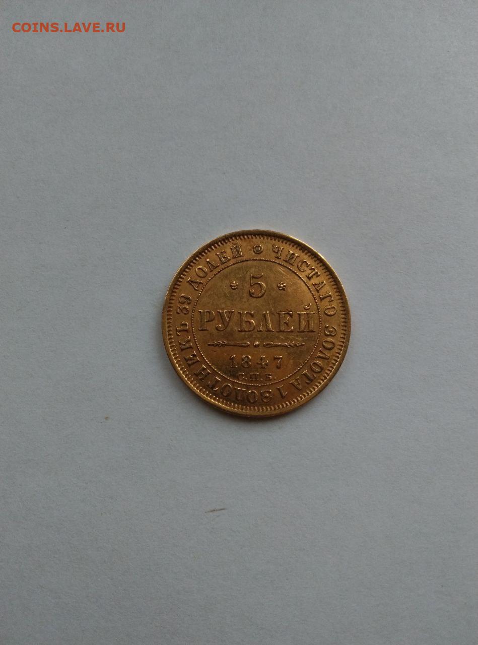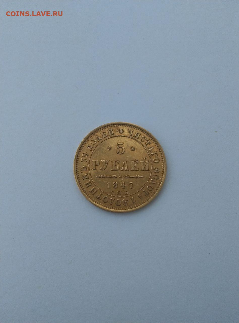 5 рублей 1847 СПБ золото до 07.02.26 в 22.00 мск