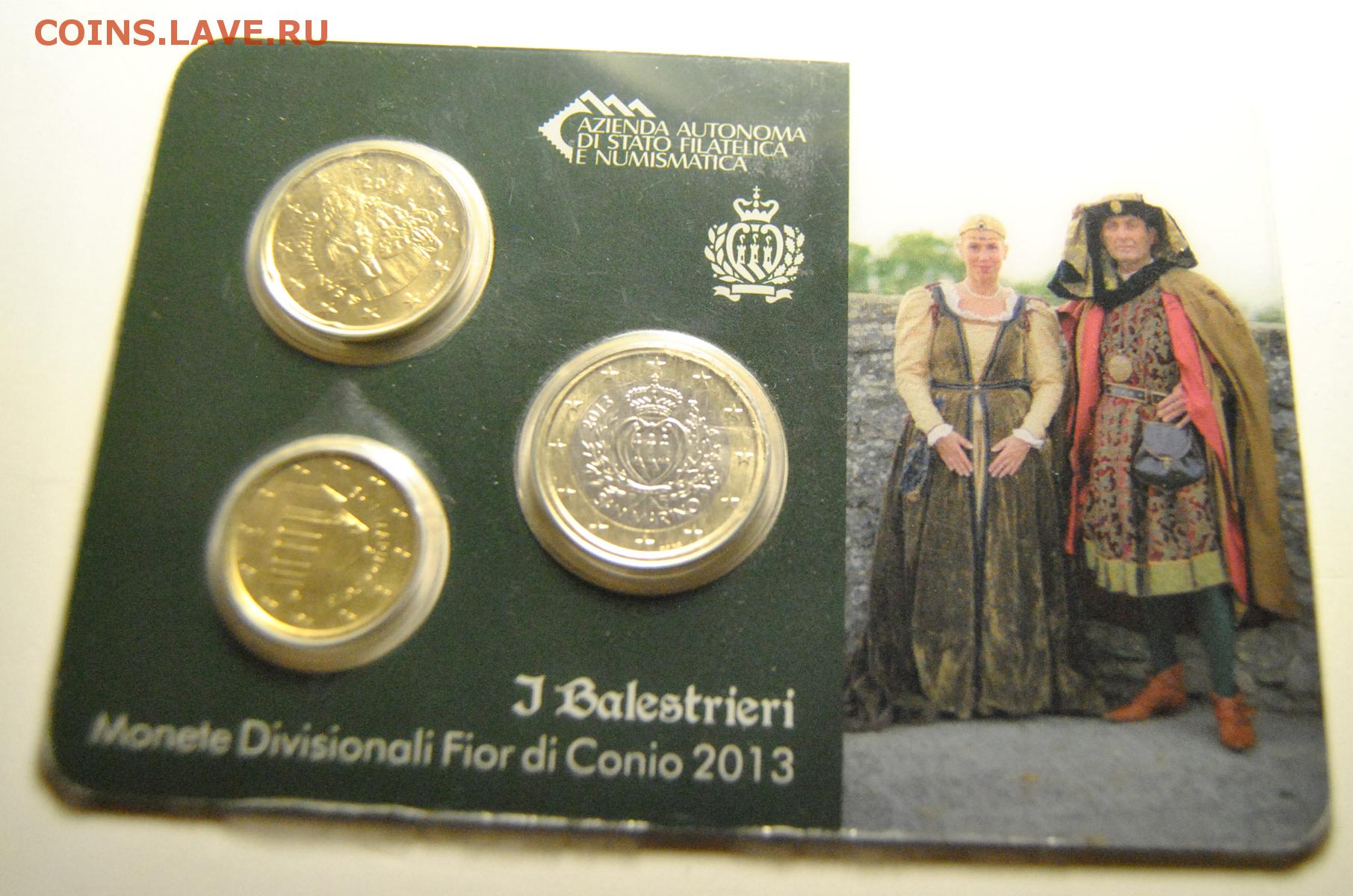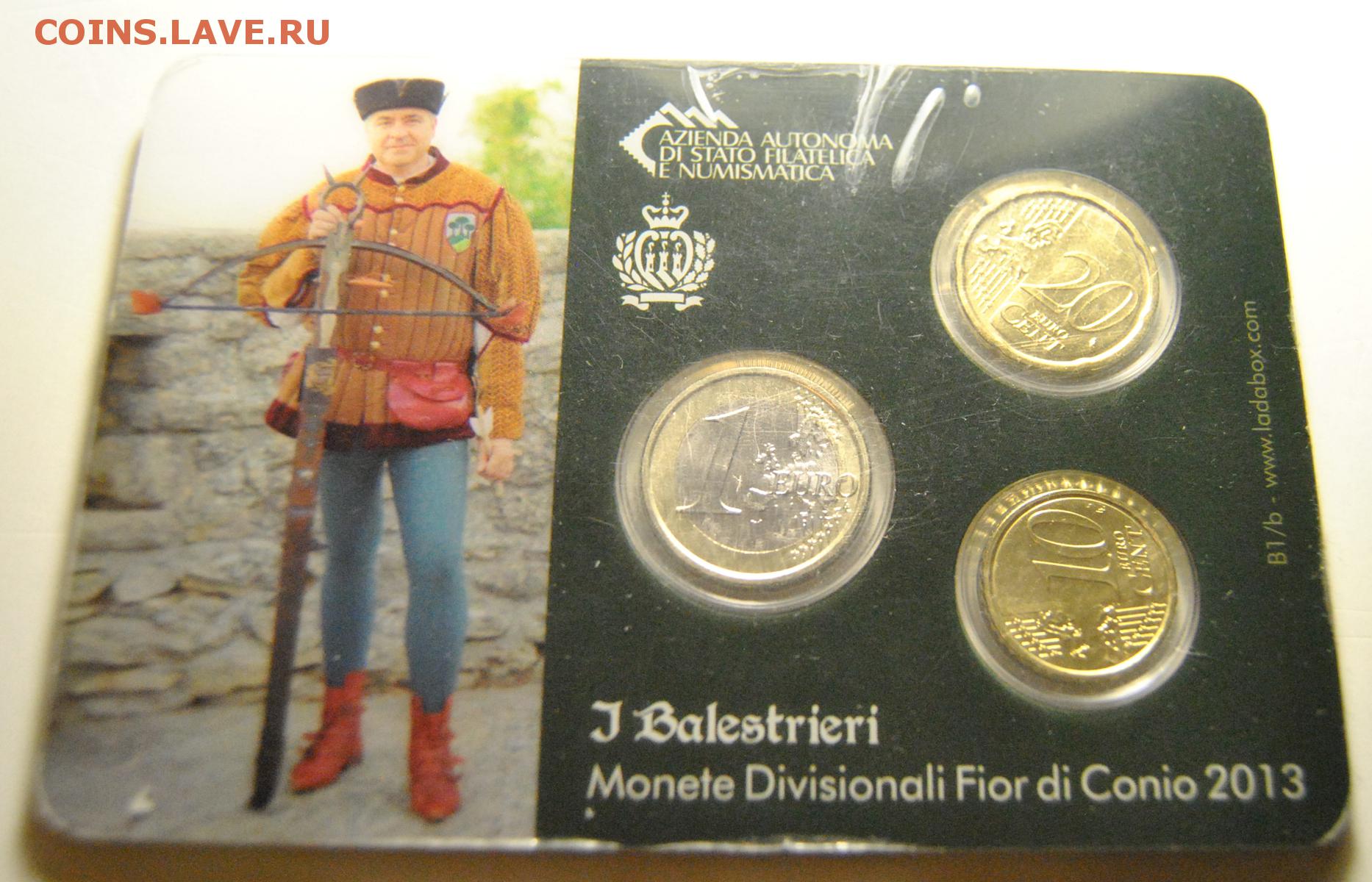 Описание лота: 10, 20 центов 1 евро 2013 Сан-Марино в пластике