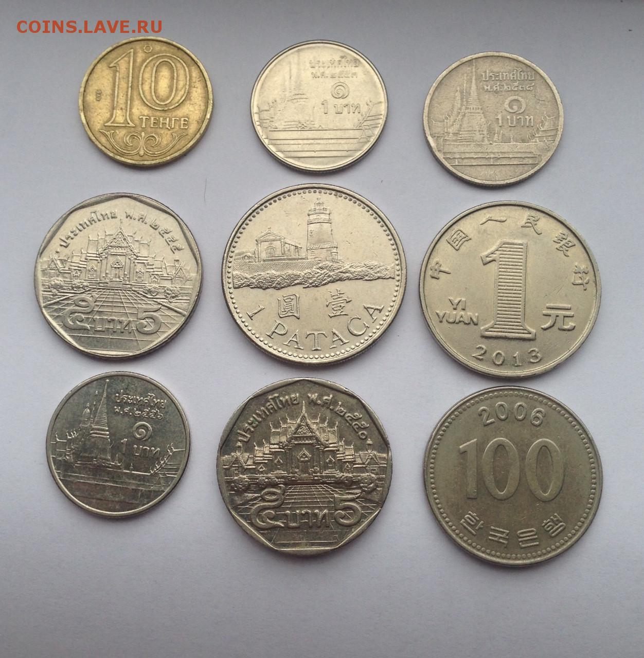 Описание лота:1 юань КНР , 1 патака Макао , 100 вон Ю.Корея , 1 бат - 3шт , 5 бат - 2шт Таиланд , 10 тенге Казахстан