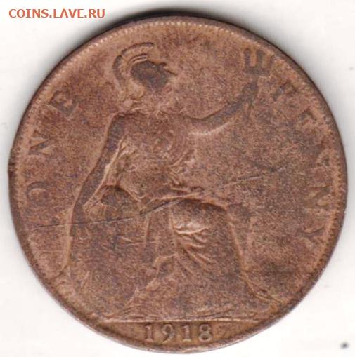 ВЕЛИКОБРИТАНИЯ 1 пенни 1918 г. до 13/11/25 г в 23.00