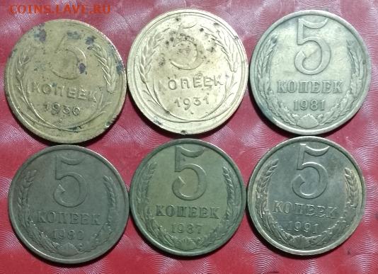 СССР 6 монет: 5коп 1930,1931,1981,1982,1987,1991Л Фикс 02/03