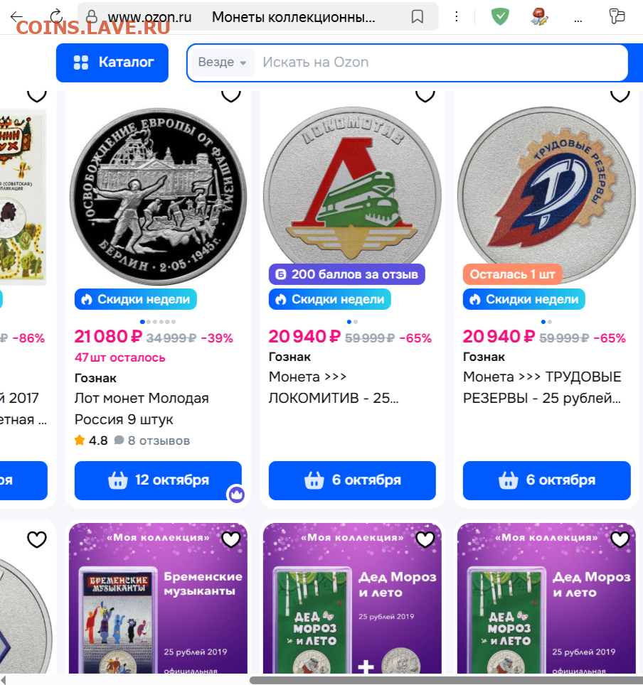 Зарегистрирован: 24-11-2013 20:18:18 Сообщения: 22909 Город: МОСКВА-СМОЛЕНСК Пол: ![]() Благодарил (а): 1 311,00 Lv (339 раз.) Поблагодарили: 1 639,00 Lv (82 раз.) Имя: Роман Тема: Покупаю юбилейку крупным оптом ![]() |