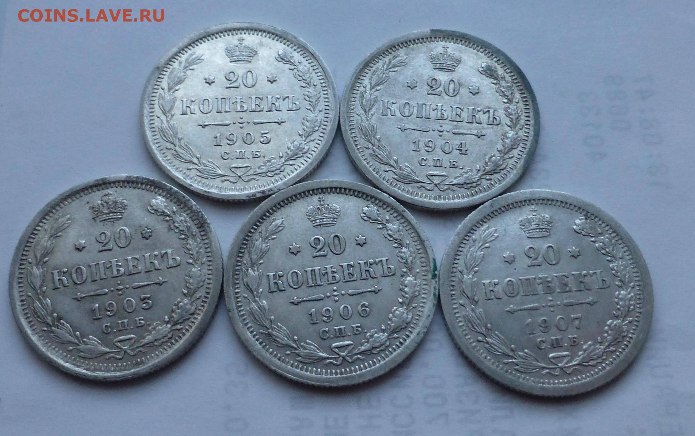 20 копеек 1903,1904,1905,1906,1907