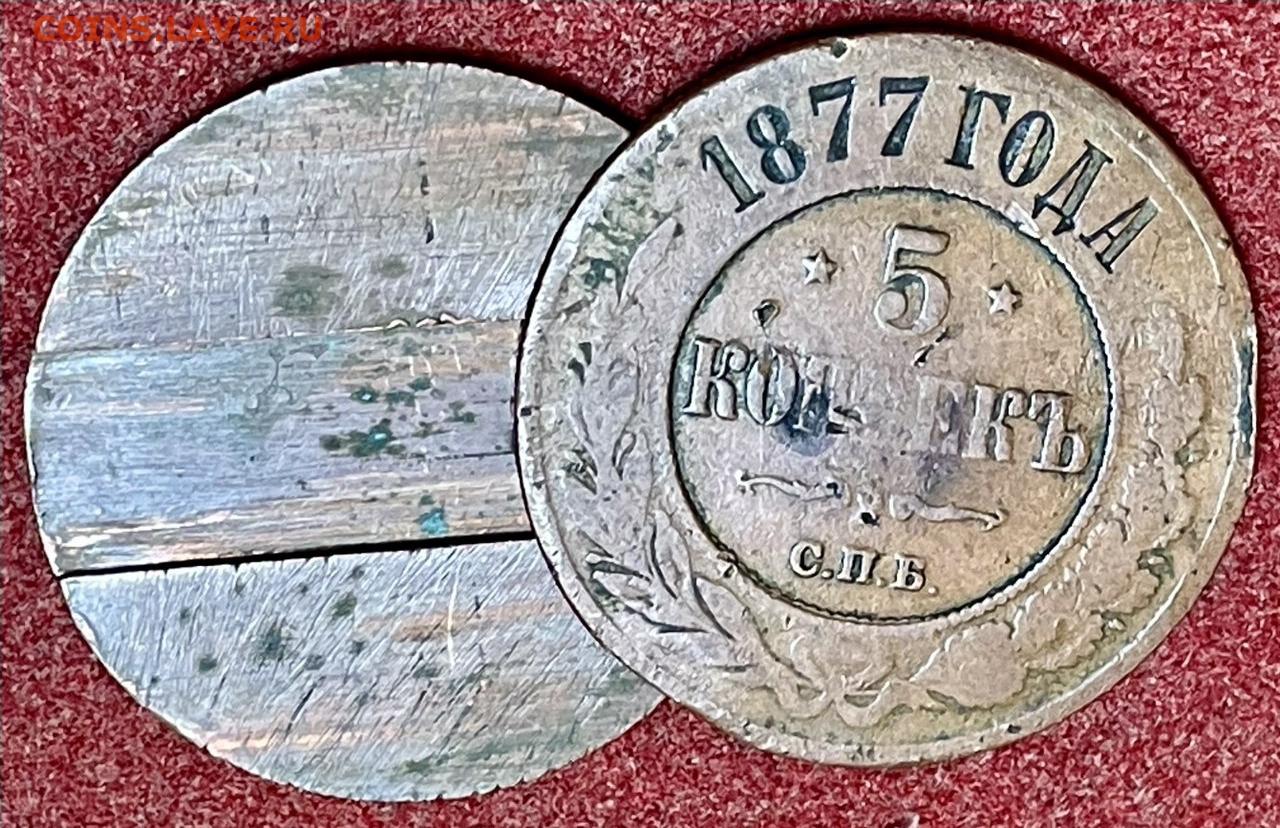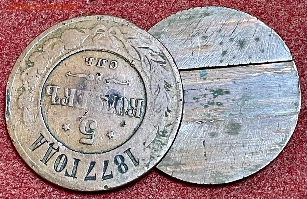 5 копеек 1877 г из двух половинок!