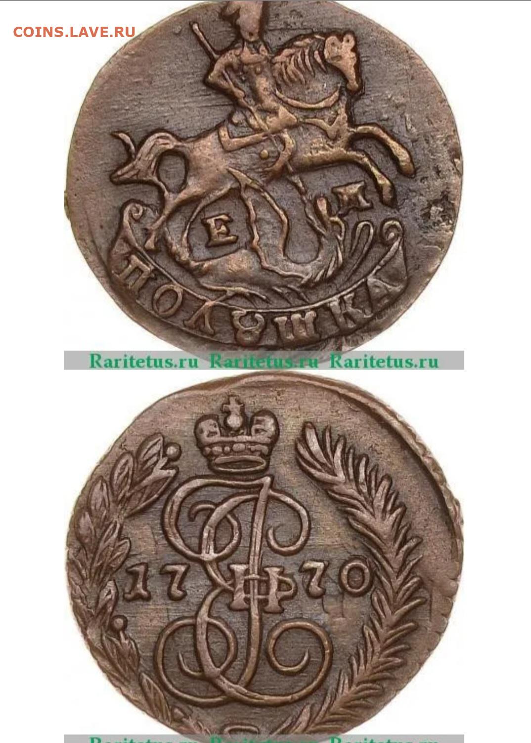 Полушка 1770 года ем Екатерина UNC