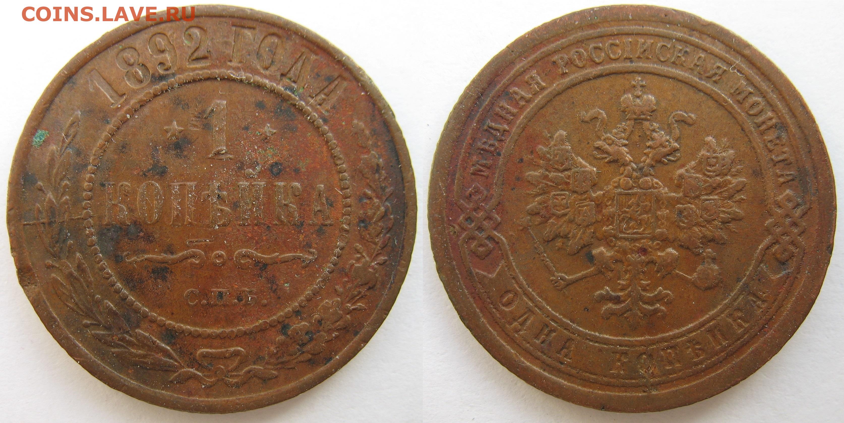 1 копейка 1892 г. на оценку.