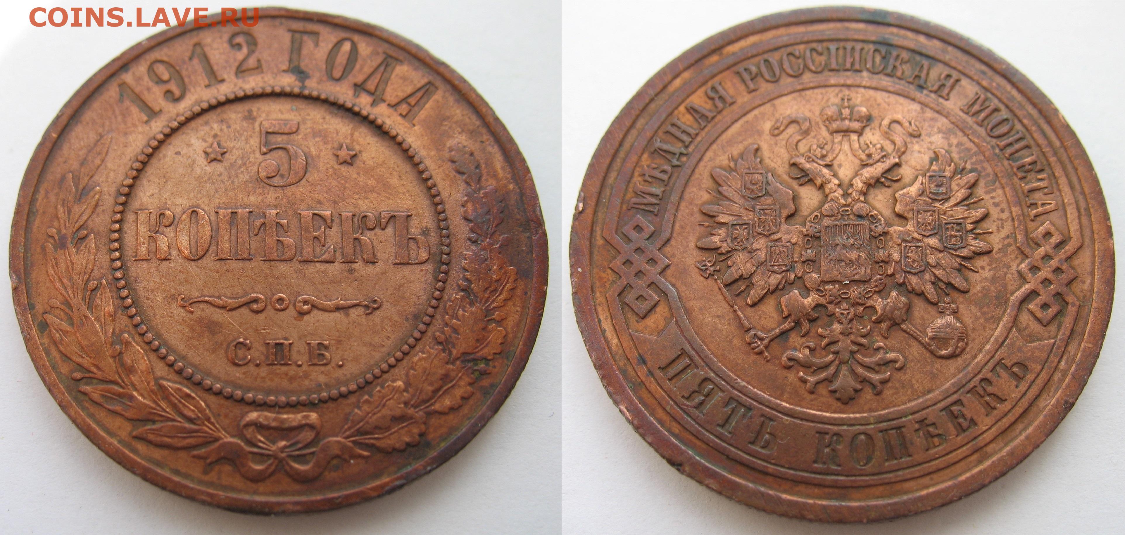 5 копеек 1912 года. Медь. На оценку.