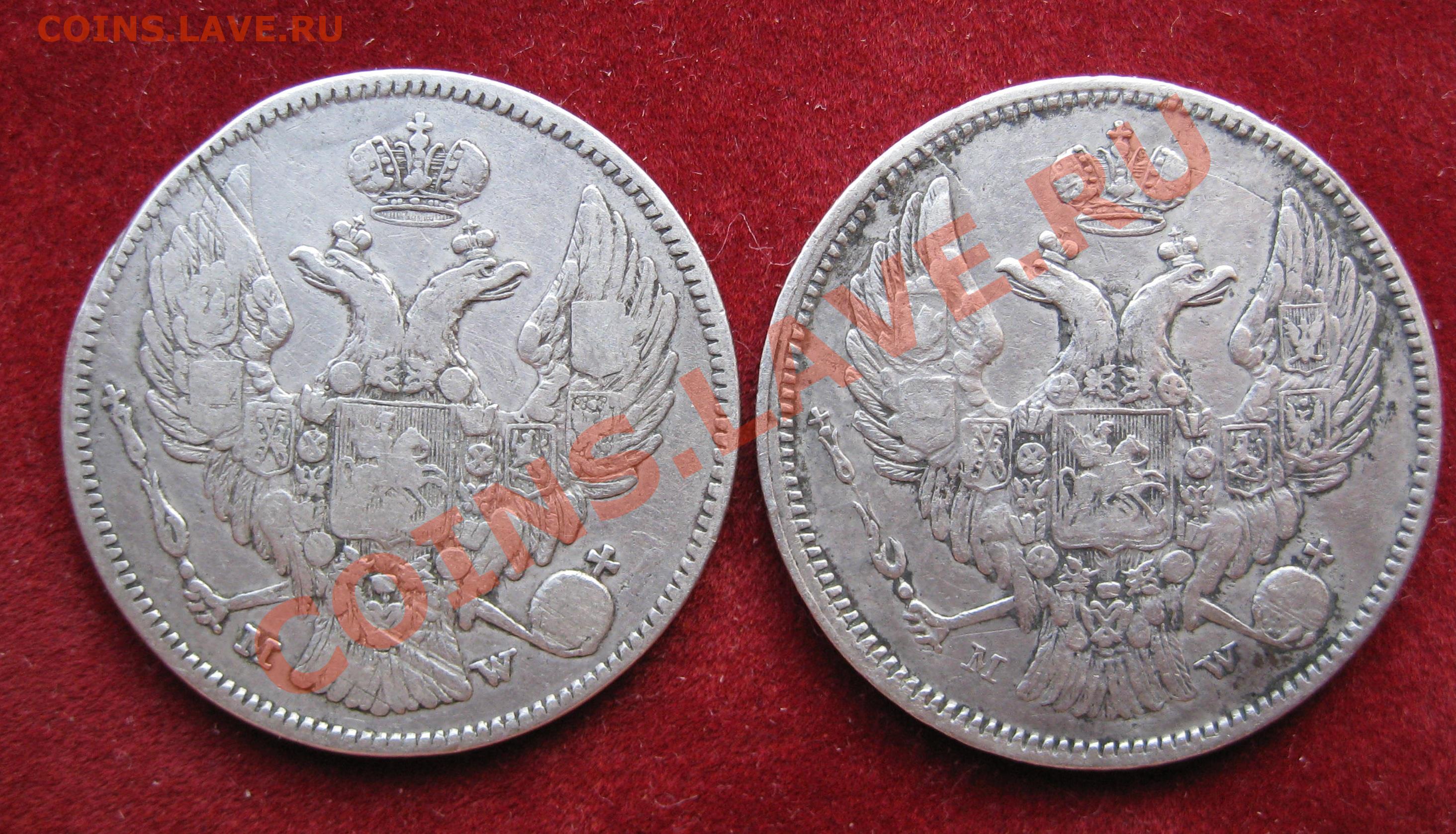 30 копеек -2 злотых, 1834,1836,1837