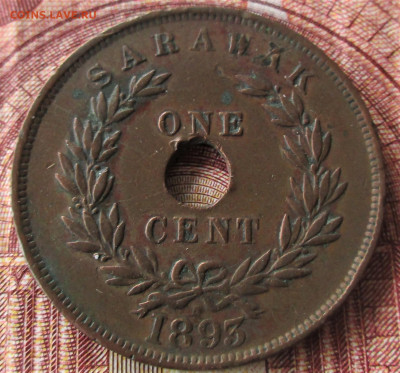 САРАВАК 1 цент 1893. Предпродажная.