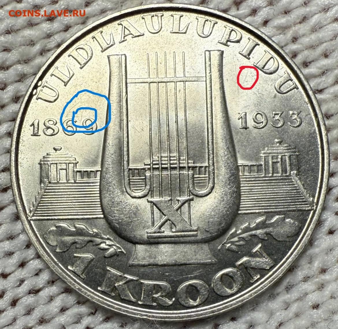 1 крона 1933. Эстония. Песенный фестиваль.