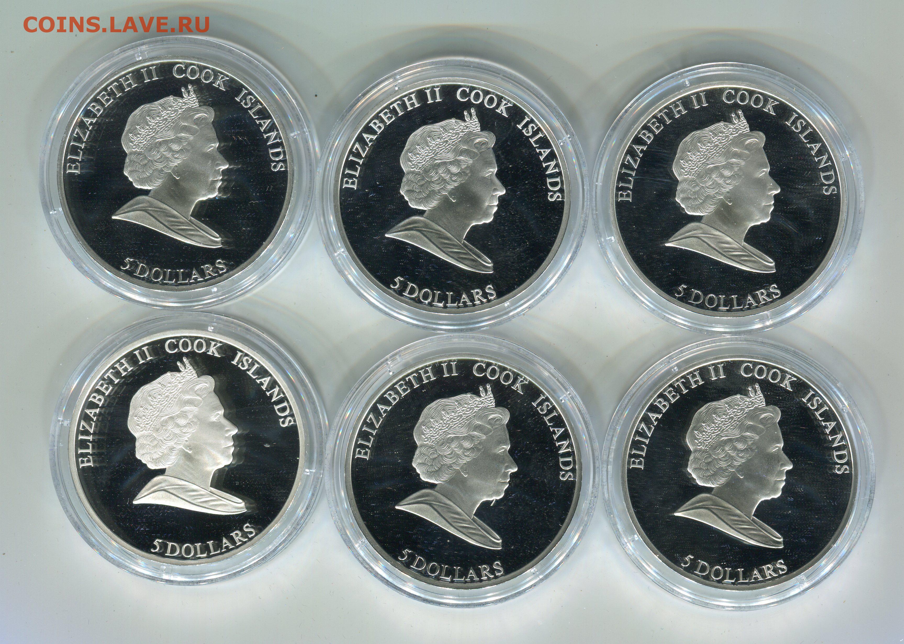 Набор монет о-в Кука Большие парусные корабли 20 века.