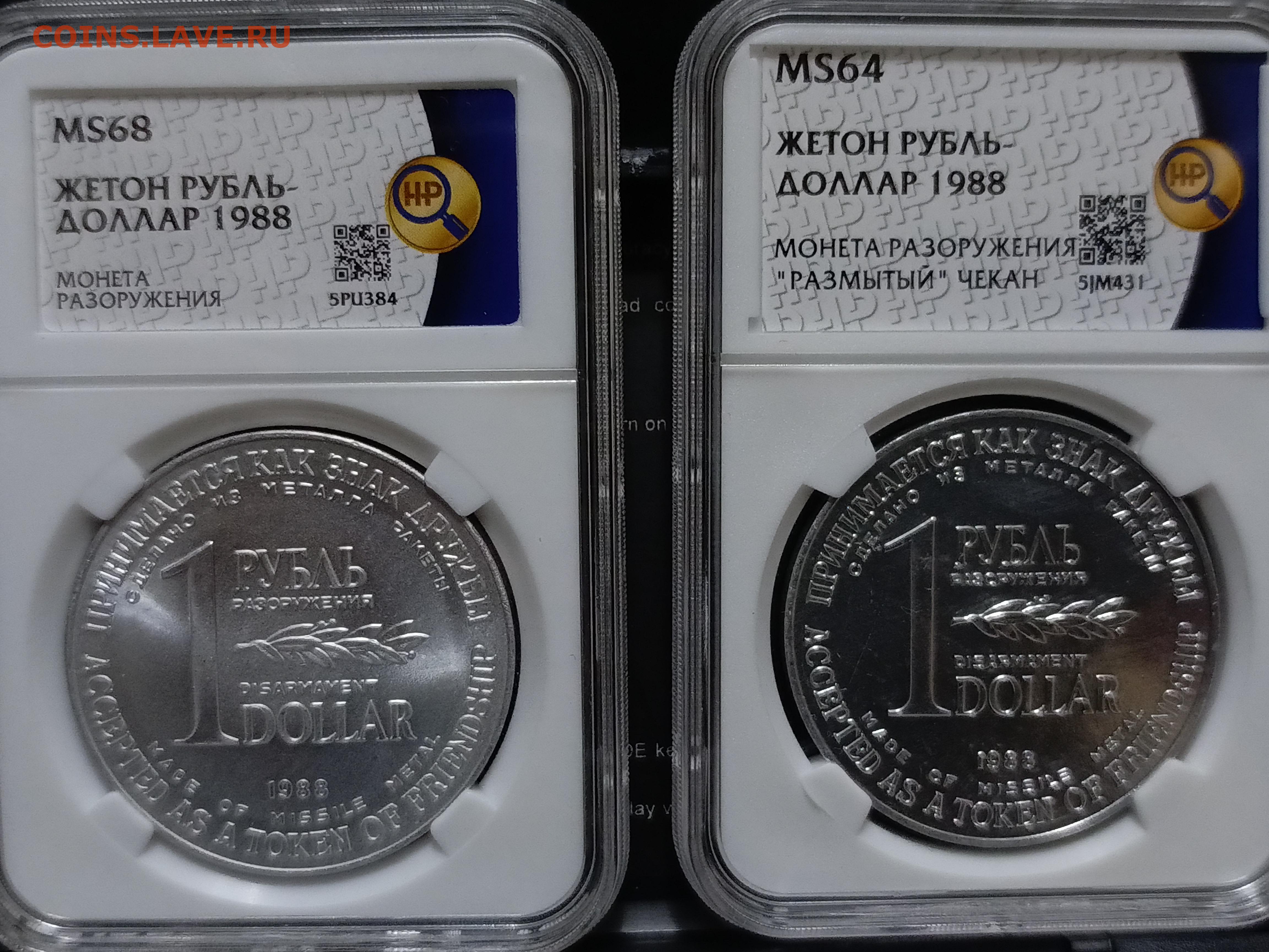 Жетон 1 Рубль-доллар монета разоружения "размытый чекан"
