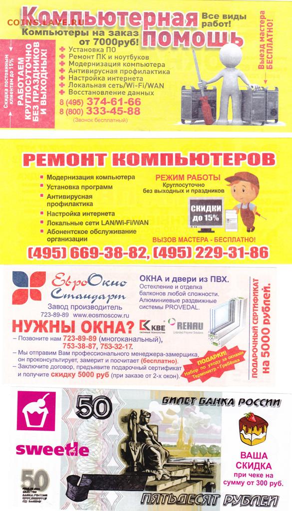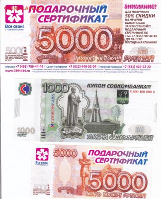 Рекламки в виде купюр, банкнот, ассигнаций и т.п.