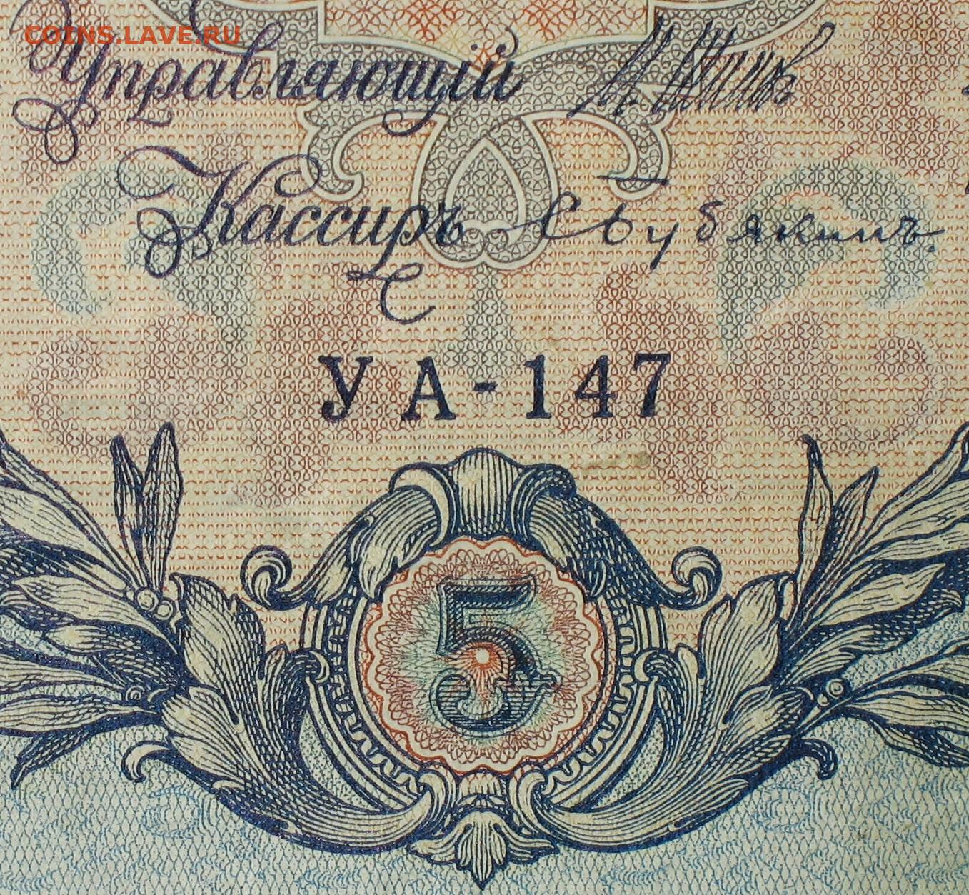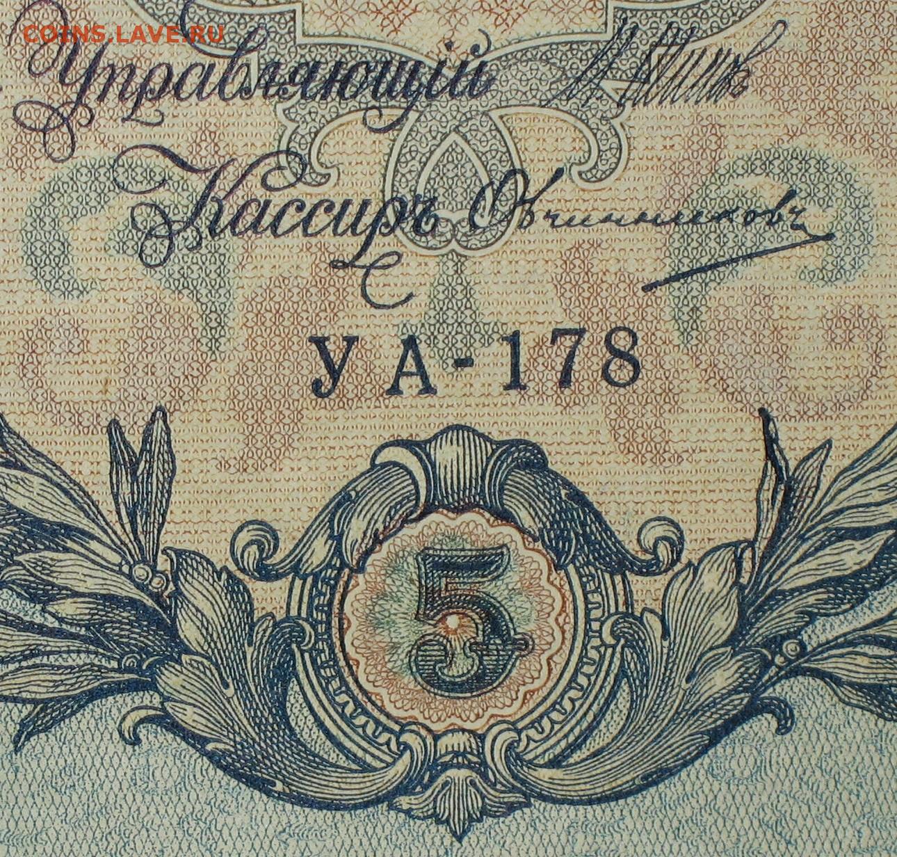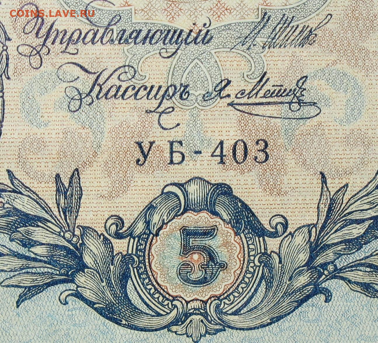 5рублей 1909г Серии УА-УБ- Полные выпуски всех серий.