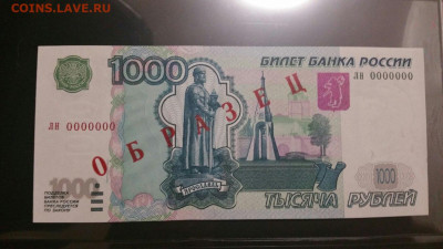 1000 РУБЛЕЙ 1997 / 2004 ОБРАЗЕЦ лн 0000000