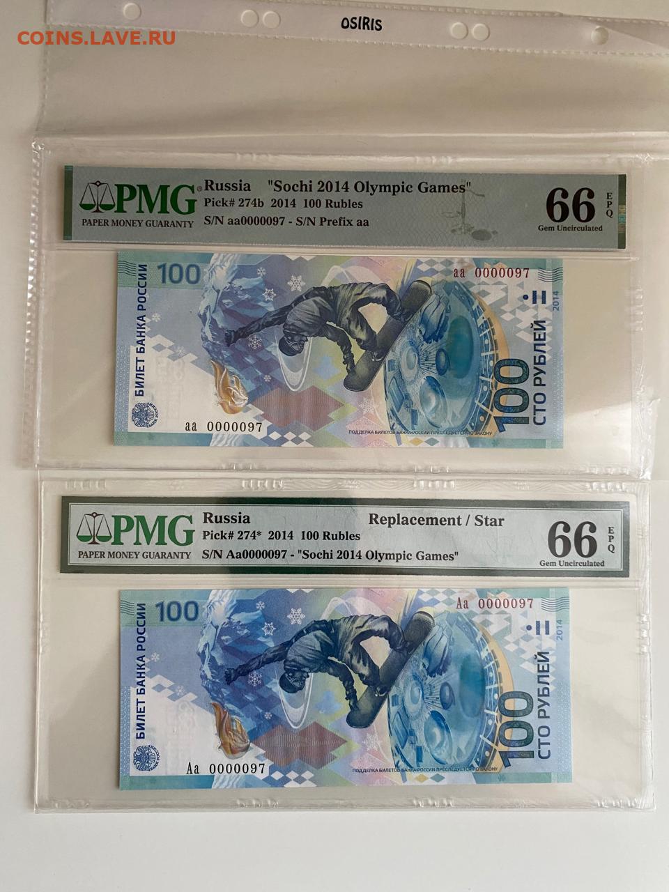 Сочи 100 рублей 2014 RR пара с одинаковыми номерами!0000097