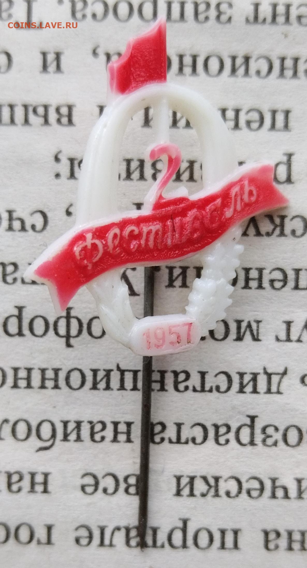 2-й фестиваль 1957 год пластик значок на опознание оценку
